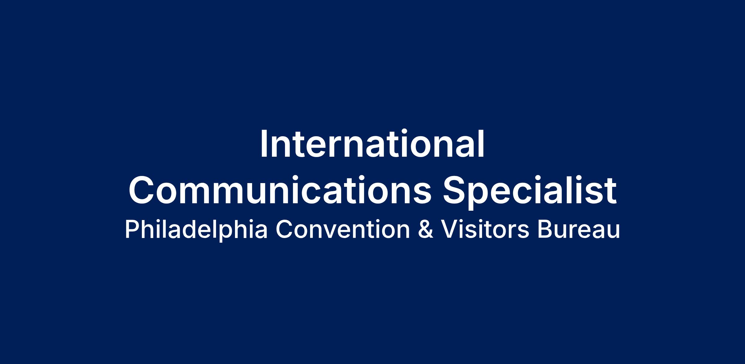 DescriptionThe International Communications Specialist supports PHLCVB’s global communications efforts through hands-on execution across assigned international markets. Reporting to the International Communications Manager, this role is responsible for producing market-specific content, coordinating media engagement (including familiarization (FAM) tours) and executing international projects aligned with PHLCVB’s broader communications strategy.