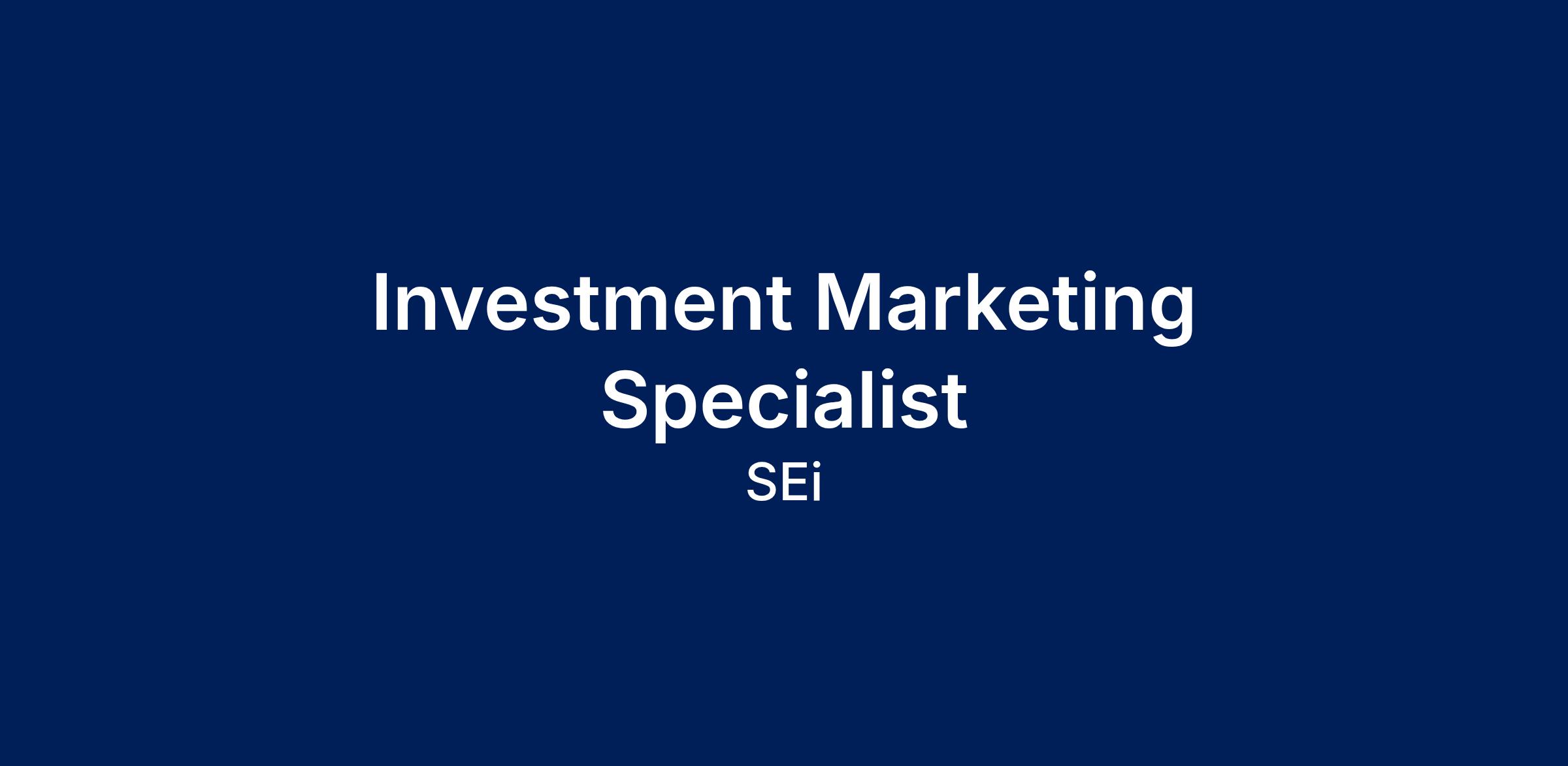 SEI is seeking an Investment Marketing Specialist to join the Asset Management Marketing team. This role supports the development and execution of product marketing content for the North American business that help promote our investment products to financial advisors and banks. The Investment Marketing Specialist will help bring SEI’s investment capabilities to market by supporting marketing collateral, email communications, and webinars.