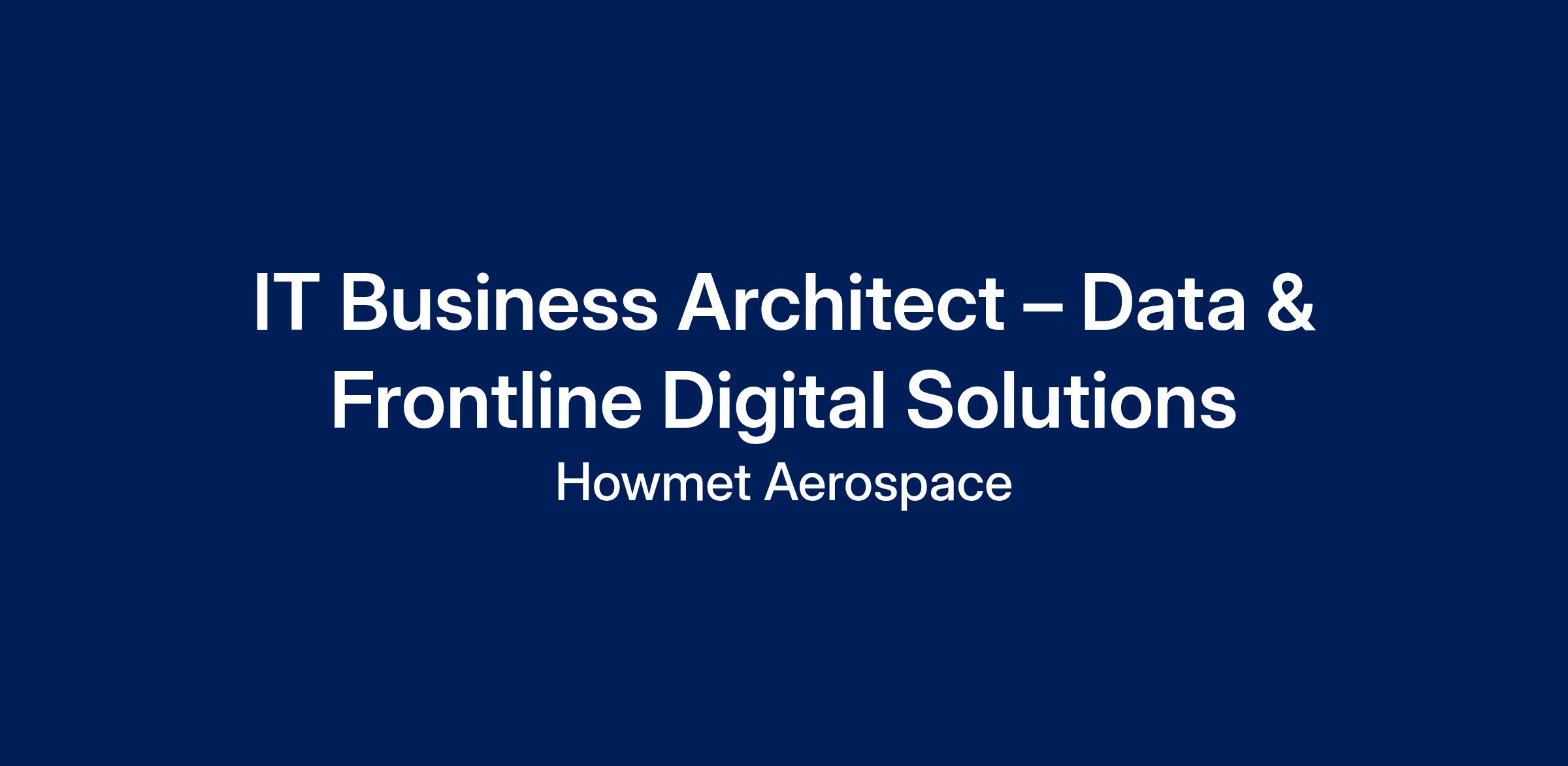 ResponsibilitiesHowmet Aerospace is currently in search of an IT Business Architect – Data & Frontline Digital Solutions to join our Global Information Services (GIS) Resource Unit at the Howmet Corporate Center in Pittsburgh, PA. The position will report into the Senior Director, Corporate Applications and be part of the Architect team that strives to provide value-add business-driven solutions, through the leverage of right technologies. This role will be capable of building strong relationships across the business, as well as serving as an advocate for technology with BU/RU leadership.