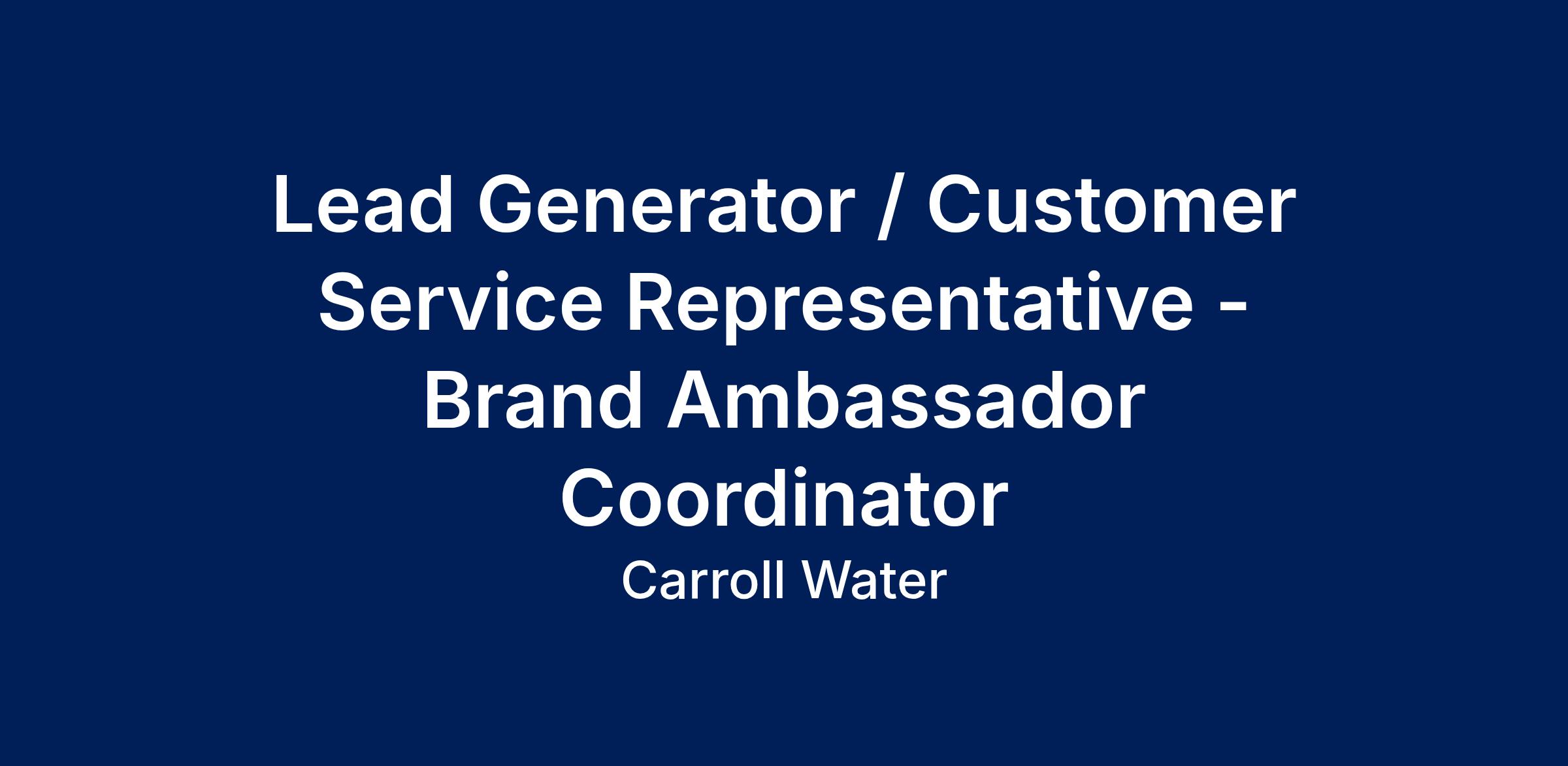 Grow Your Marketing Career While Leading in the Field Carroll Water is seeking a motivated and organized Marketing Coordinator to support and oversee our retail and event-based marketing efforts.
