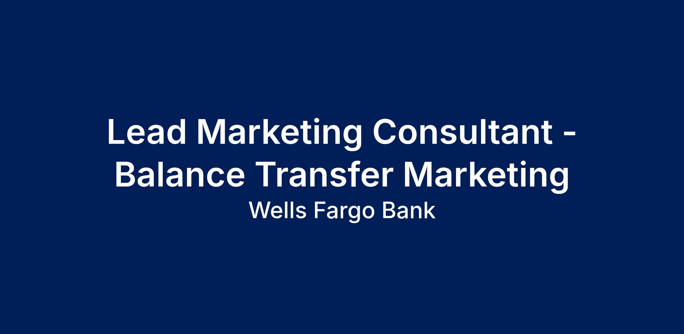 Wells Fargo is seeking an experienced marketing professional to join the Card marketing team. In this role you will execute engaging marketing messages to existing customers to drive response to balance transfer offers. The ideal candidate will work effectively with a team of marketers to execute all aspects of a monthly marketing campaign including developing targeting criteria and creatives, building offers and disclosures, and overseeing channel execution. The role will be focused on execution activities that mitigate risk while driving customer and business value.