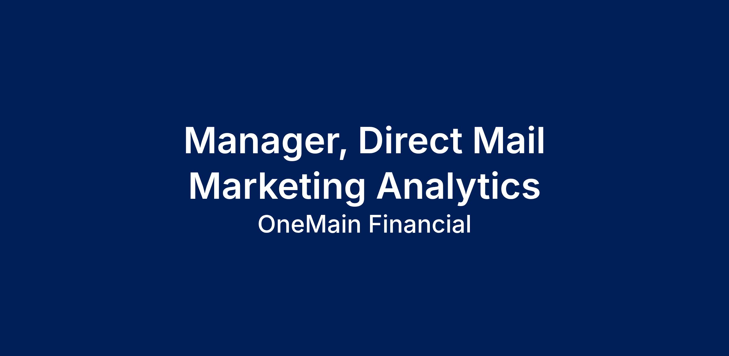Manager, Direct Mail Marketing Analytics