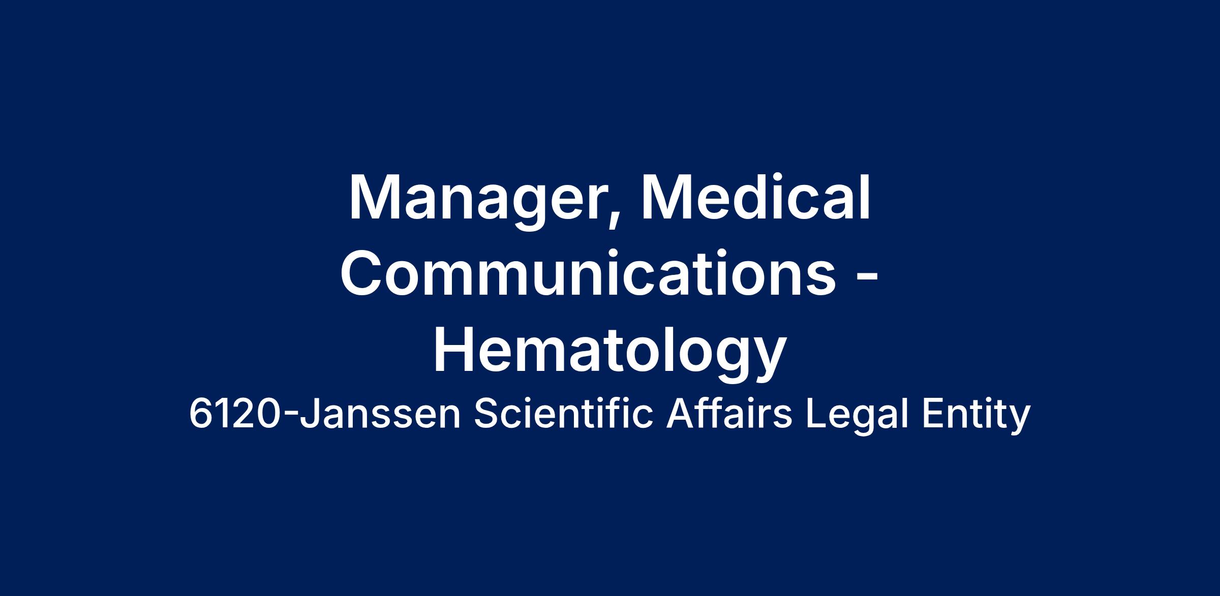 Johnson & Johnson Innovative Medicine is recruiting for a Manager, Medical Communications, Hematologic Malignancies located in Horsham, PA.