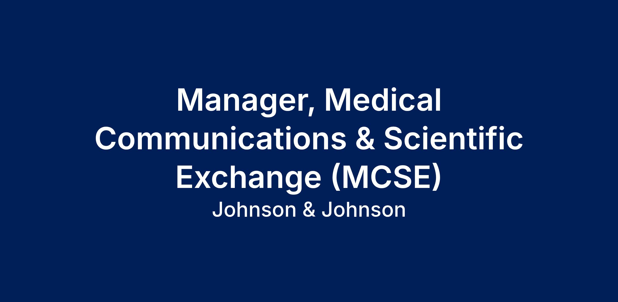 Johnson & Johnson Innovative Medicine is recruiting for a Manager, Medical Communications & Scientific Exchange (MCSE) located in Horsham, PA.