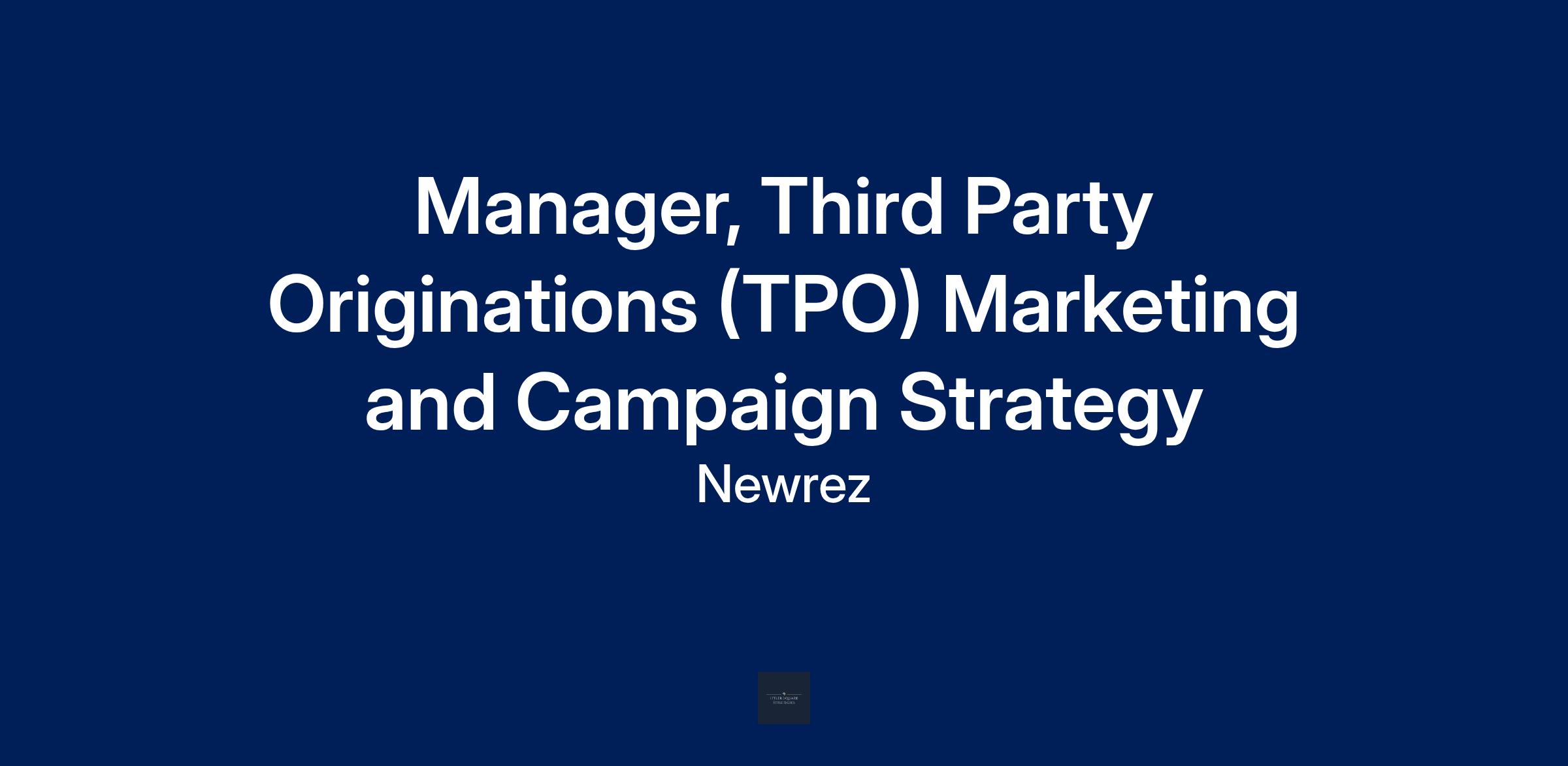The Marketing Manager, TPO (Third Party Originations) & Campaign Strategy will drive the strategy and execution of client-facing campaigns that increase engagement, retention, and loan submissions. Reporting to the Director of Wholesale Marketing, this role blends campaign leadership with content development, cross-functional collaboration, and compliance oversight. This person will play a key role in elevating the Newrez brand through digital marketing initiatives, content creation, and event support.