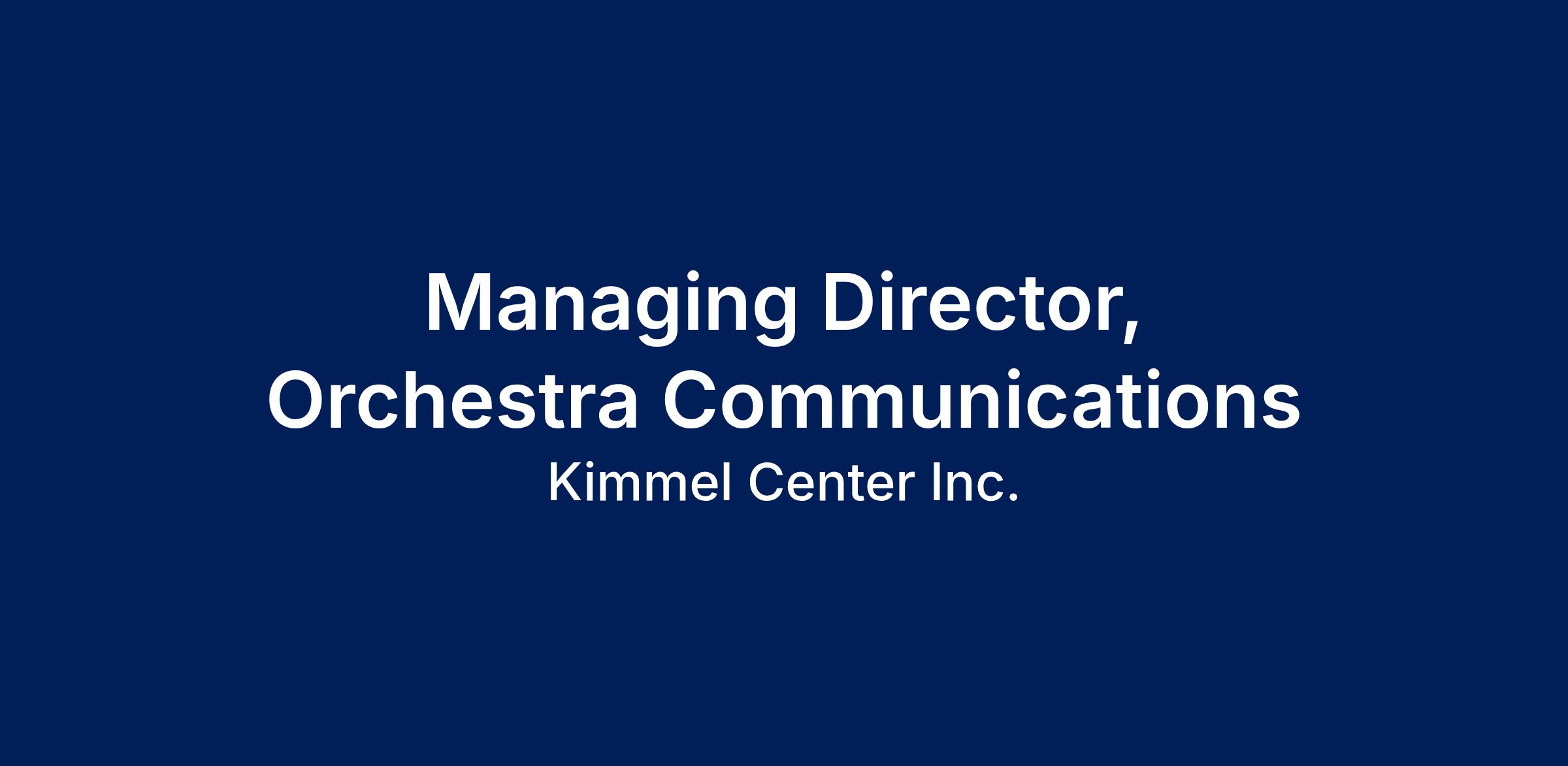 Position Title: Managing Director, Orchestra Communications
