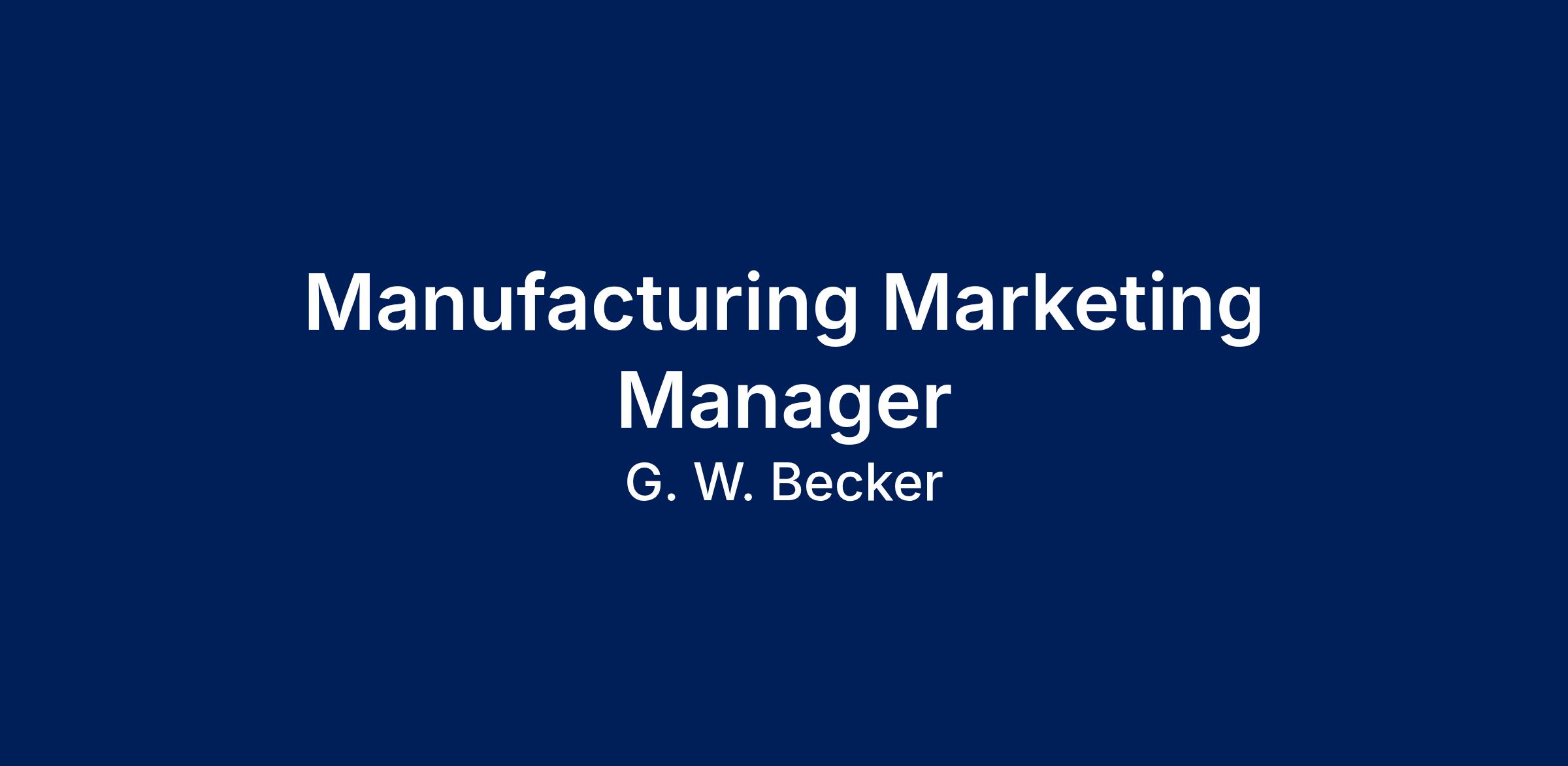 **Key Responsibilities**- - Develop and lead the G.W. Becker Marketing Plan.