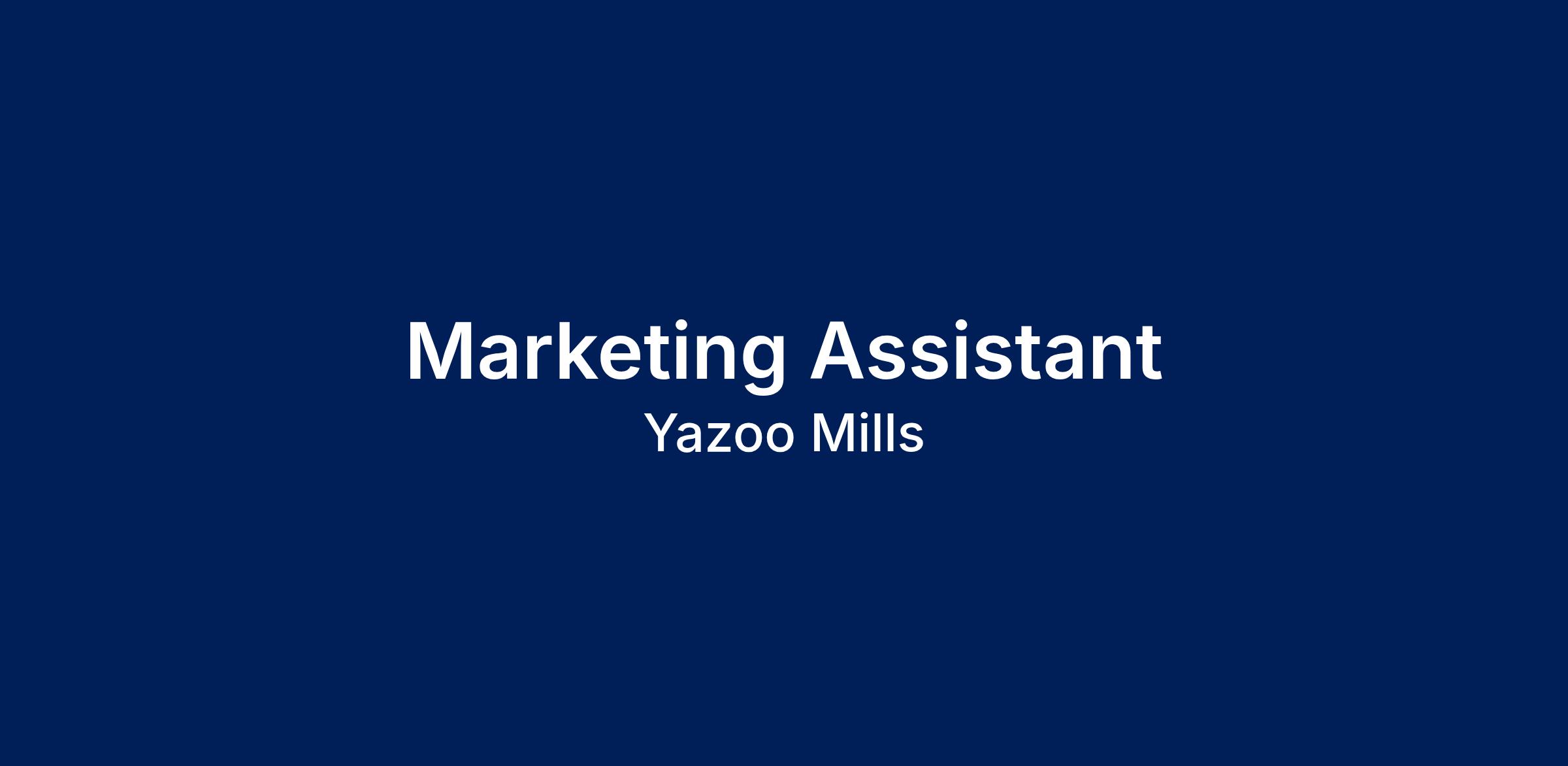 Are you looking for a new career with a stable company who has been in business for over 120 years? Yazoo Mills is hiring a Marketing Assistant to join our well-established and growing company onsite in our Hanover facility.