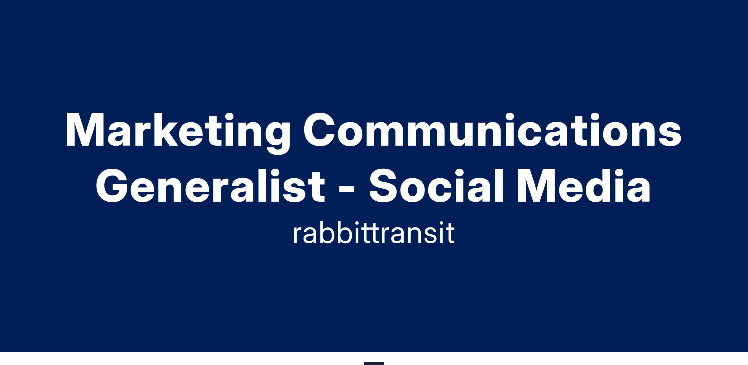 Marketing Communications Generalist - Social Media