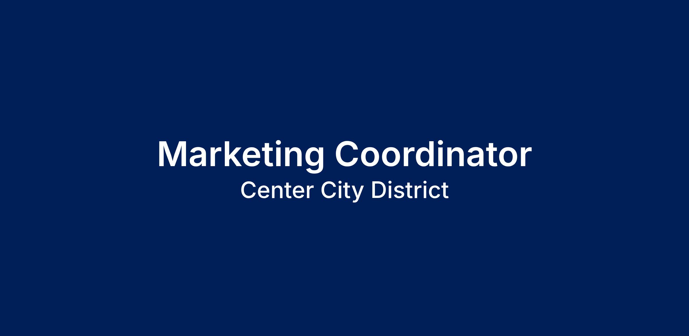 DescriptionCenter City District is seeking a dynamic and detail-oriented Marketing Coordinator to join our team in bringing Philadelphia's downtown parks and public spaces to life. This is a full-time position that combines event coordination, marketing support, and hands-on program management.