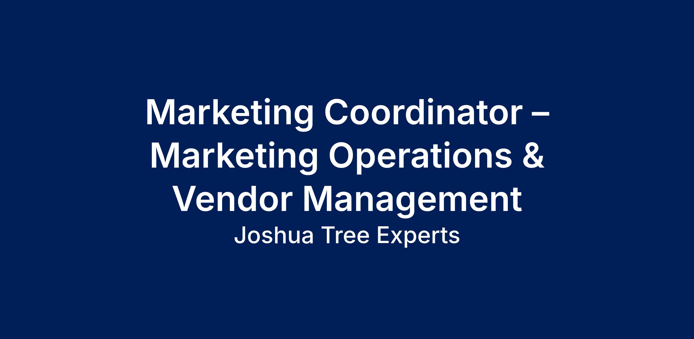 The Marketing Coordinator serves as the operational backbone of Joshua Tree Experts' franchisee marketing support system. This FULLY REMOTE role focuses on building, managing, and optimizing vendor relationships and marketing workflows that enable franchisees to execute effective marketing campaigns. By coordinating specialist vendors and developing self-service tools, this position frees the Marketing Manager to maintain direct franchisee relationships while ensuring operational excellence across all marketing support areas.