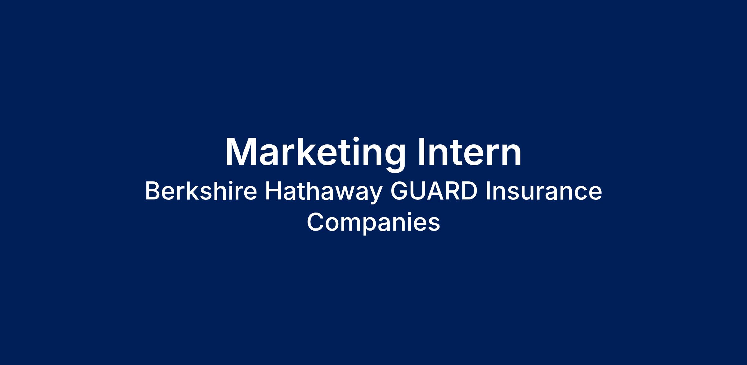 Berkshire Hathaway GUARD Insurance Companies is seeking a Marketing Intern to support our Marketing and Communications team — someone who’s eager to learn, motivated to contribute, and excited to make an impact through meaningful, hands‑on work.