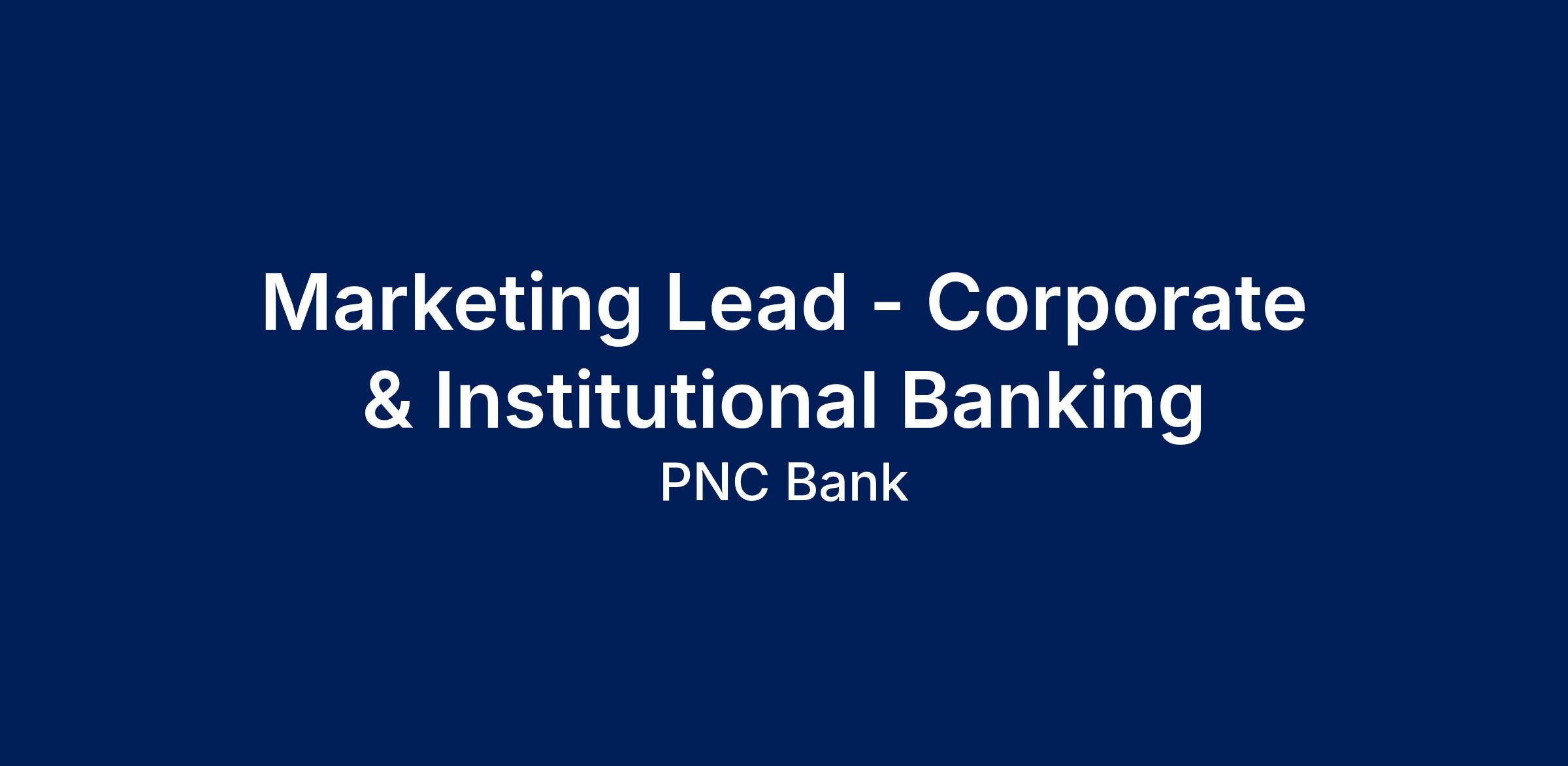 At PNC, our people are our greatest differentiator and competitive advantage in the markets we serve. We are all united in delivering the best experience for our customers. We work together each day to foster an inclusive workplace culture where all of our employees feel respected, valued and have an opportunity to contribute to the company’s success. We are looking to hire a Marketing Lead to support Corporate & Institutional Banking (C&IB) within PNC's Marketing organization.