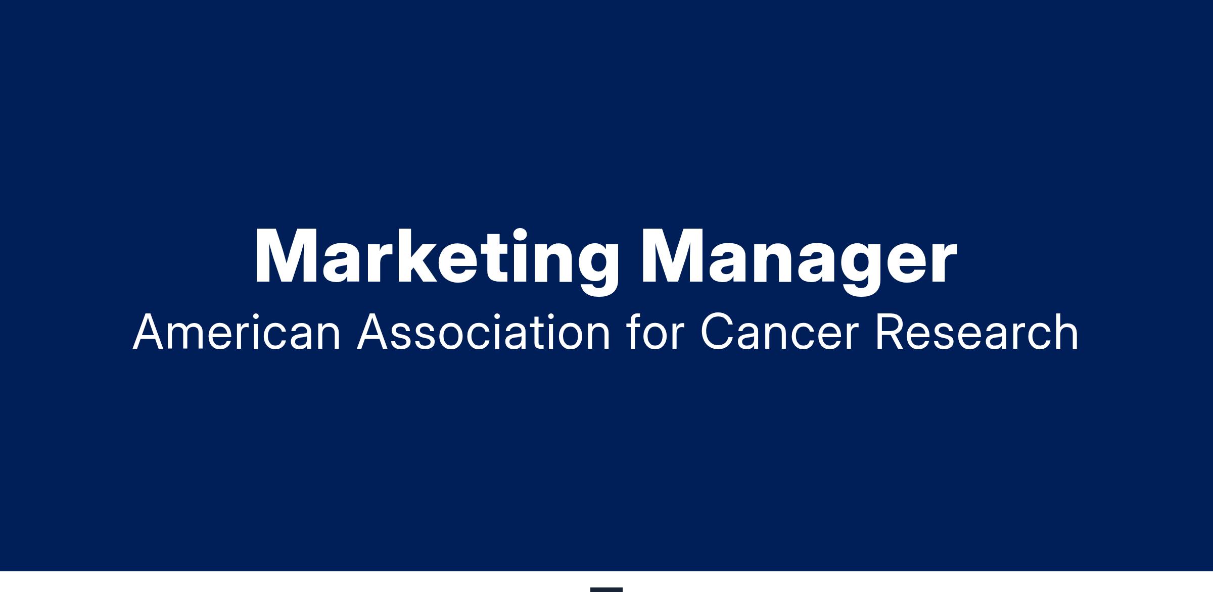 As a key member of the marketing team, the Marketing Manager will collaborate closely with the Associate Director, Marketing, the rest of the Marketing team, and other divisions/departments to reinforce the AACR’s position as the world’s premier cancer research association. A core focus of the Marketing Manager is to lend their expertise to improve targeting efforts for more successful marketing campaigns that ultimately drive growth for the organization, working cross-functionally with key internal partners. The ideal candidate is analytical, a creative problem solver, likes to work on multiple projects at once, and is excited at the prospect of contributing to the AACR’s mission.