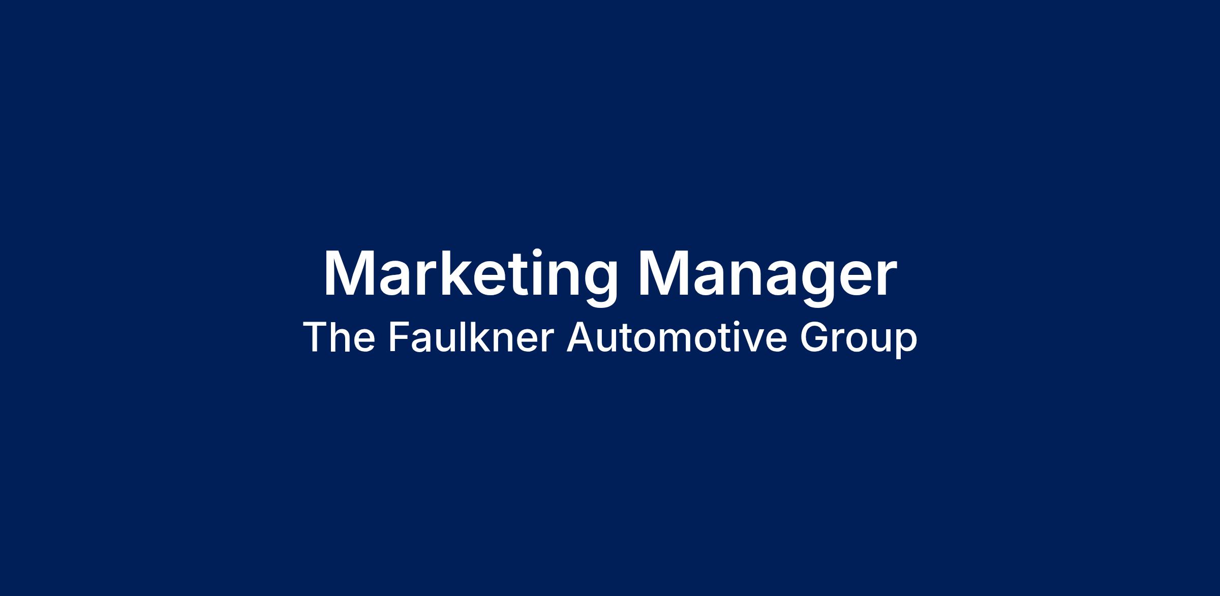 The Faulkner Automotive Group is looking for an enthusiastic, self-motivated Marketing Manager to join our team! Faulkner is a place you can establish a career and grow with the organization. While automotive experience is a plus, it is not required! We provide training to all our employees and offer continued growth opportunities for those that have excellent talent, energy, and ambition to succeed. Faulkner has won a combined 60+ Best Places to Work Awards.