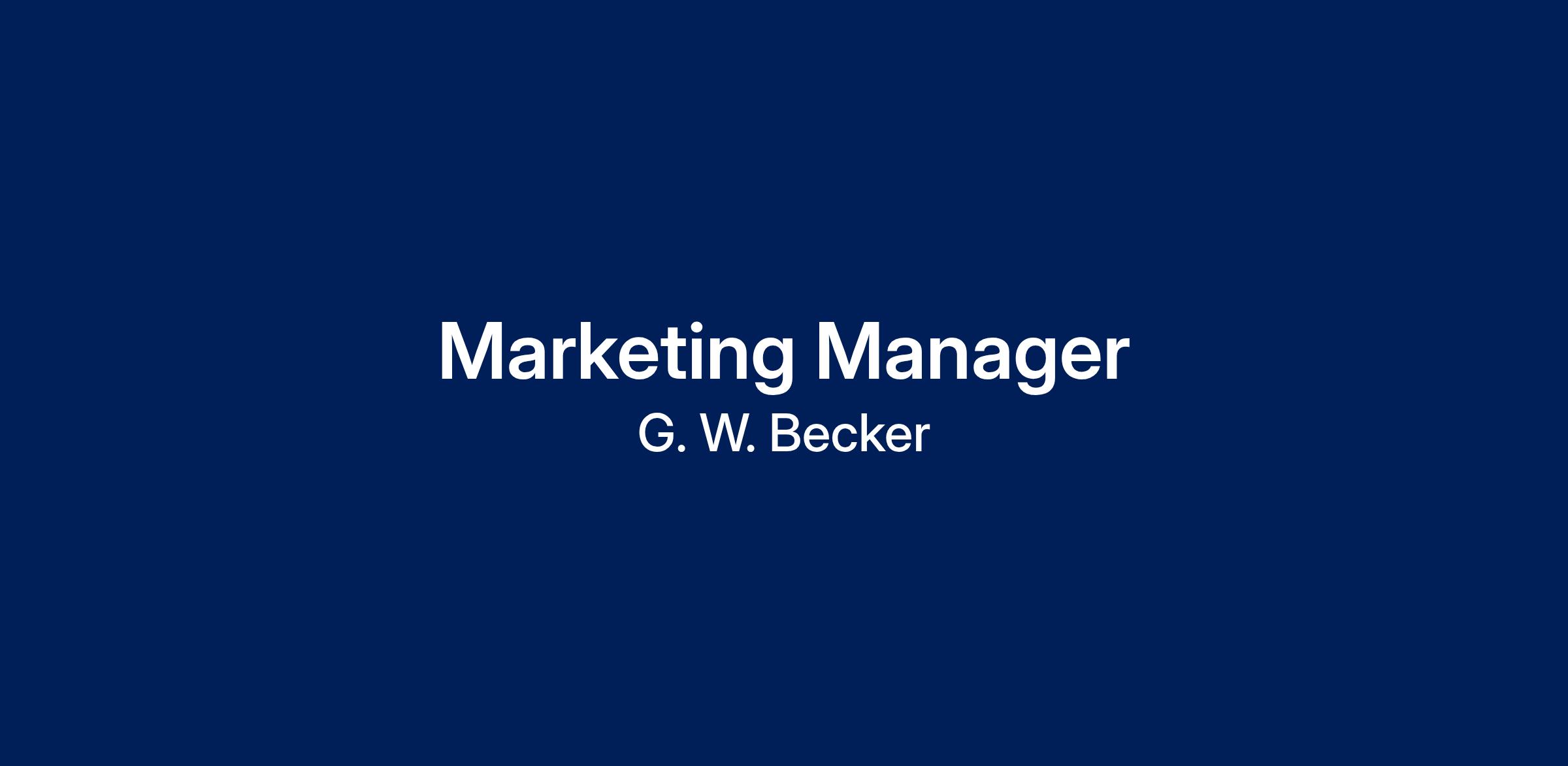 **Key Responsibilities**- Develop and lead the G.W. Becker Marketing Plan.