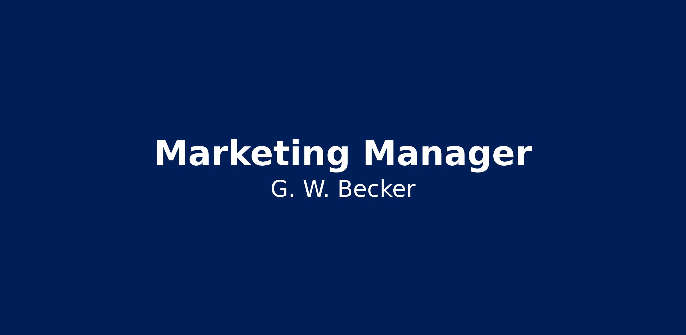 **Key Responsibilities**- Develop and lead the G.W. Becker Marketing Plan.