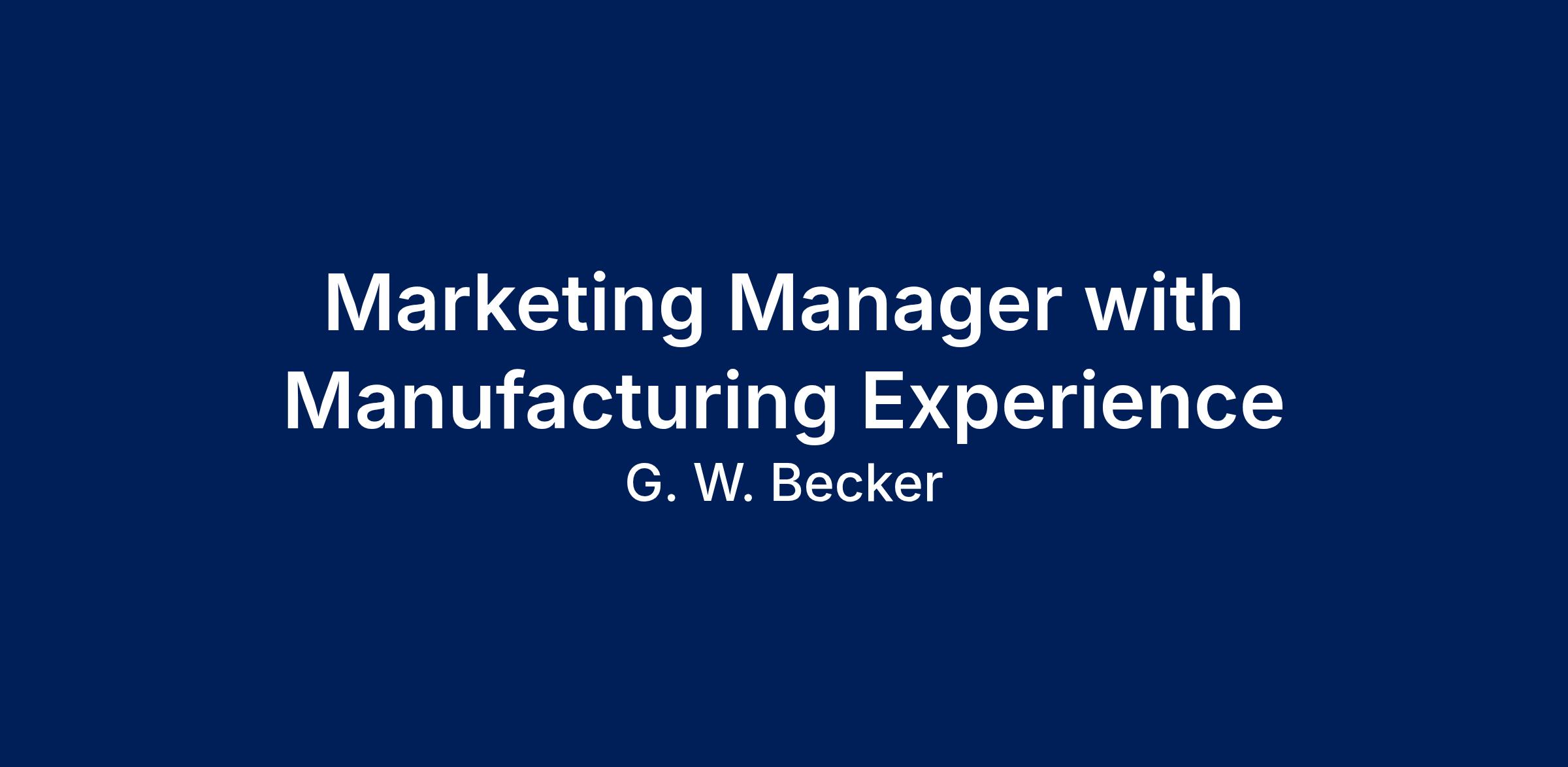 **Key Responsibilities**- Develop and lead the G.W. Becker Marketing Plan.