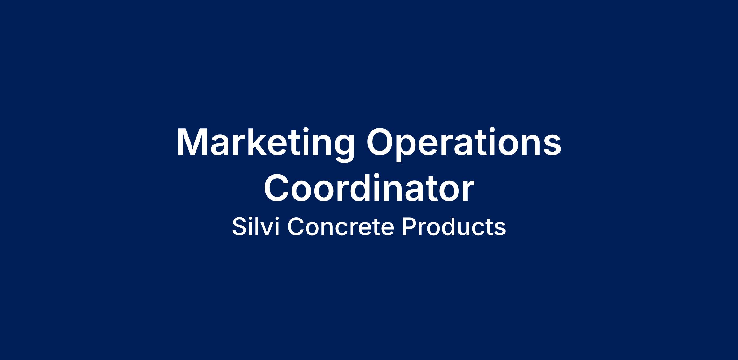 Silvi Materials is seeking a Marketing Operations Coordinator to support the execution of marketing initiatives across a growing, multi-regional organization. This role is responsible for coordinating campaigns, managing lead data and email communications, and supporting high-impact brand activations including a partnership with the Philadelphia Eagles, community initiatives, and expansion markets.