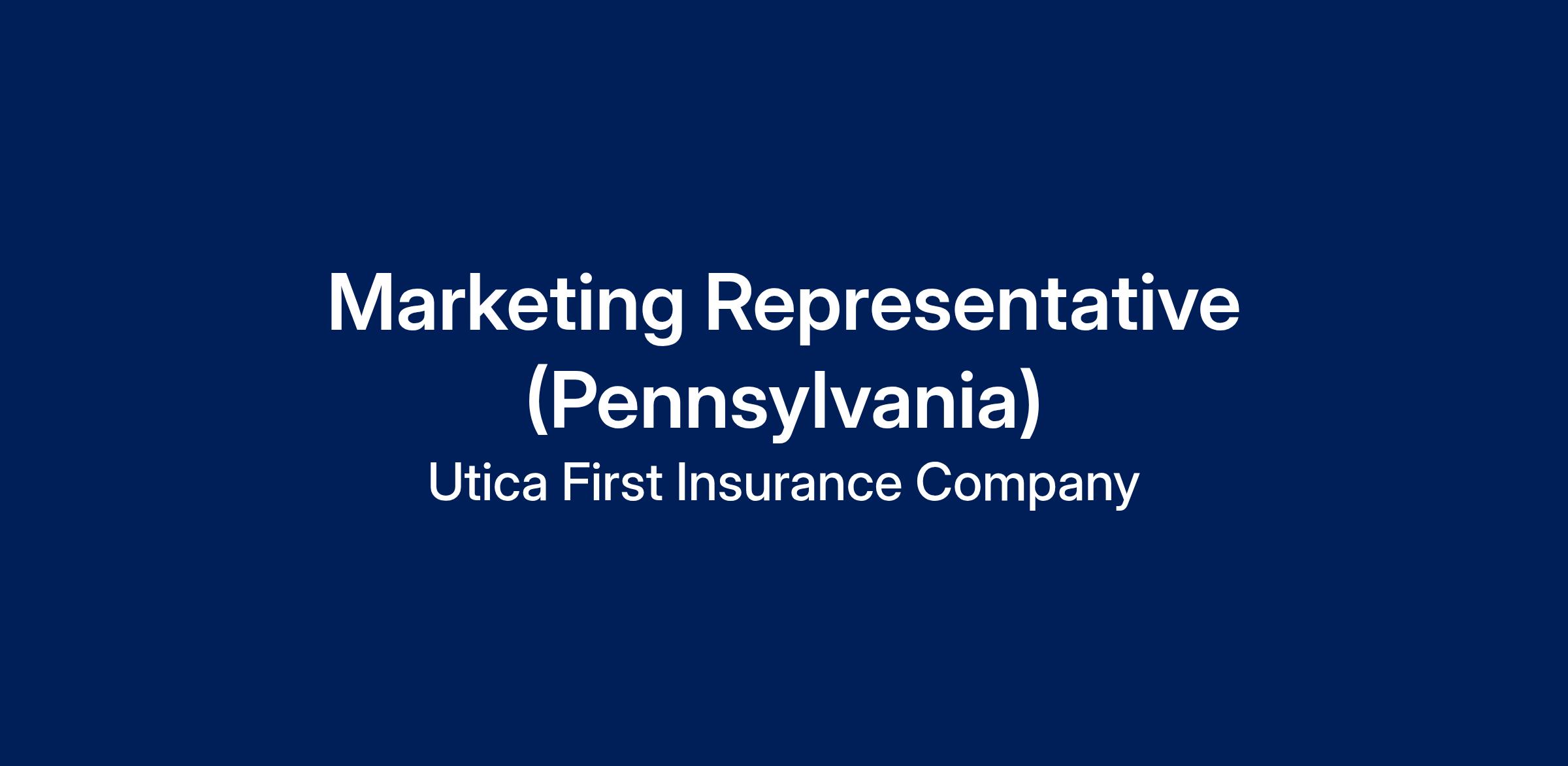 Utica First Insurance Company is currently seeking a Marketing Representative for our Pennsylvania territory. This candidate must reside in the state of Pennsylvania.