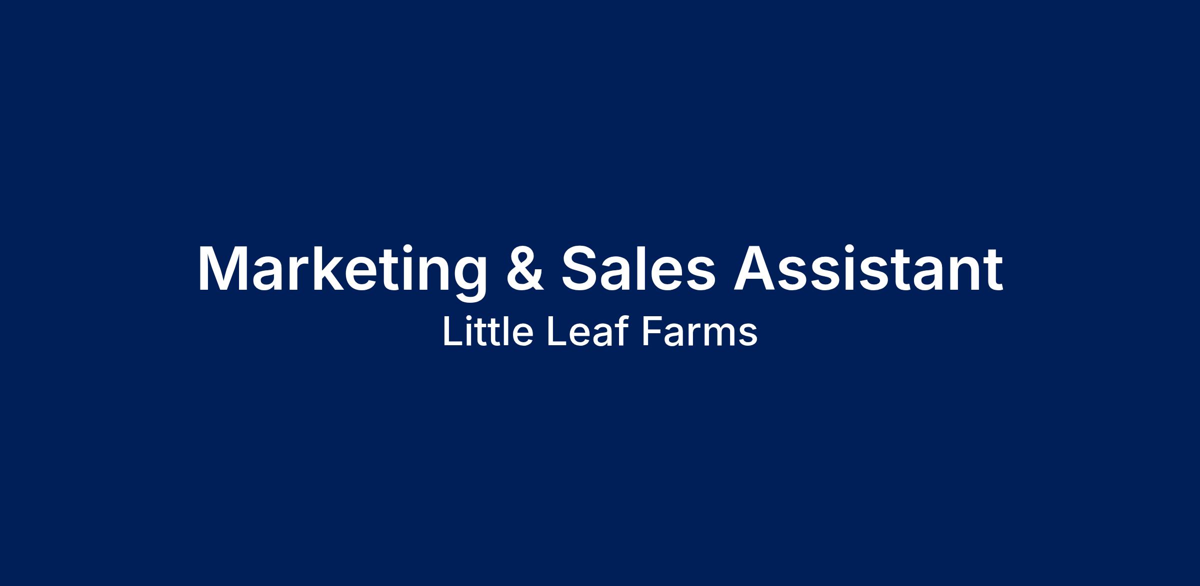 The Marketing & Sales Assistant will support Little Leaf Farms’ marketing and sales teams on a variety of projects supporting consumer and customer relations. Our ideal candidate has strong written and verbal communication skills, is highly organized and reliable, and willing to support the marketing and sales functions at a fast-growing CPG brand in the fresh produce space.