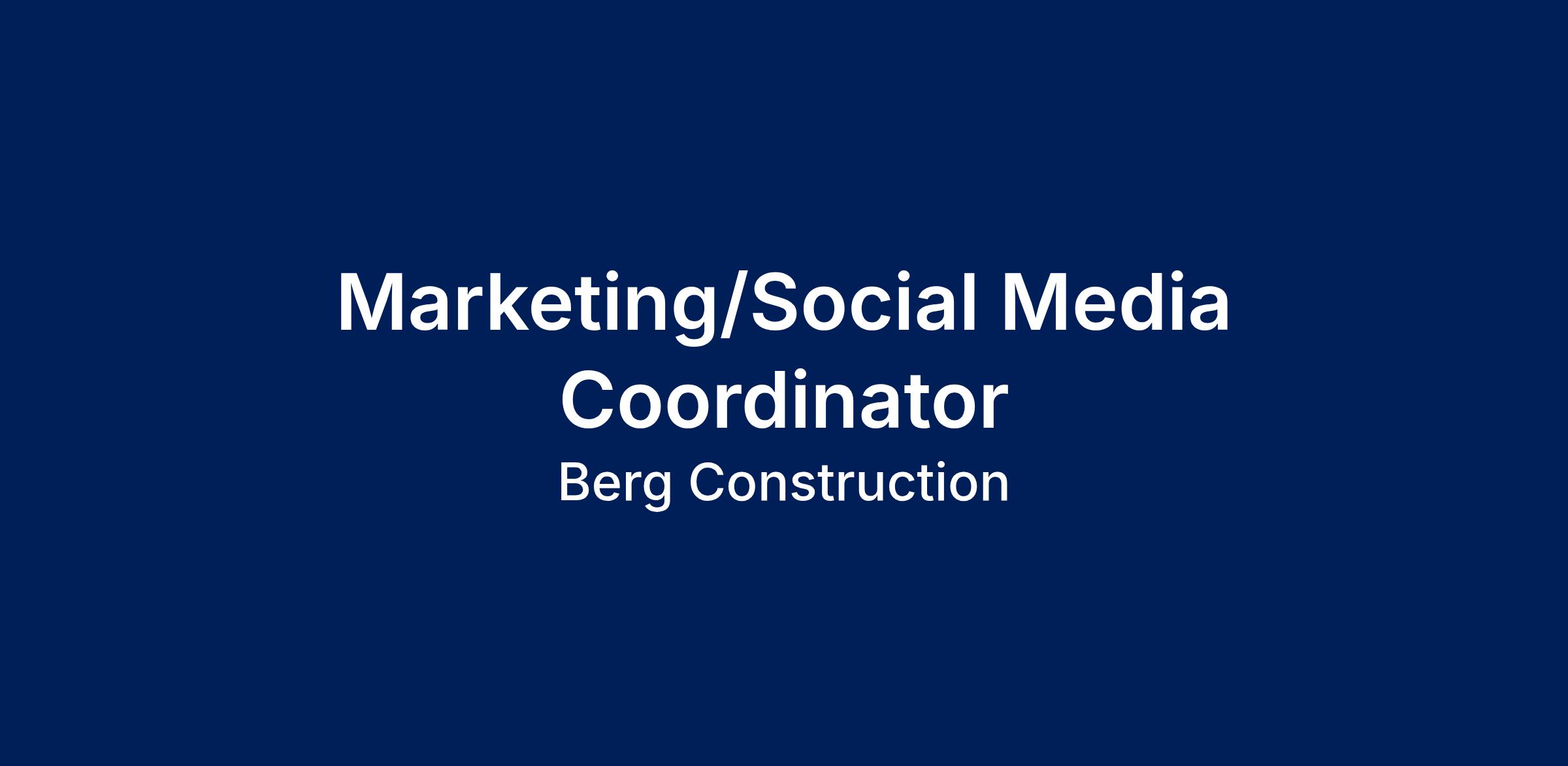 Berg Construction is accepting applications for a Marketing/Social Media Coordinator to join our team in our Morgantown, PA Office.
