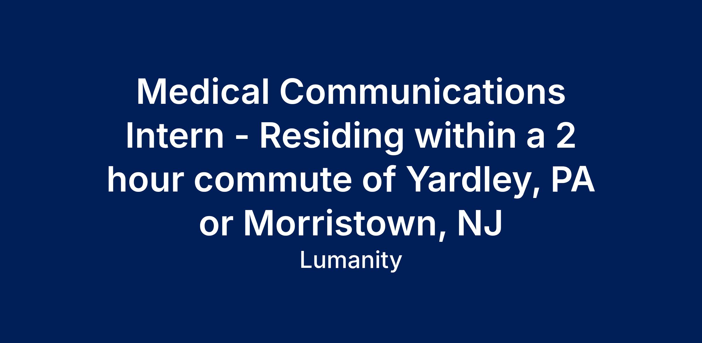 We are seeking a current or rising university senior for our Medical Communications Internship program. This internship will run for 8-10 weeks between June and August 2026 and weekly schedule of 32 hours per week, Monday-Thursday.