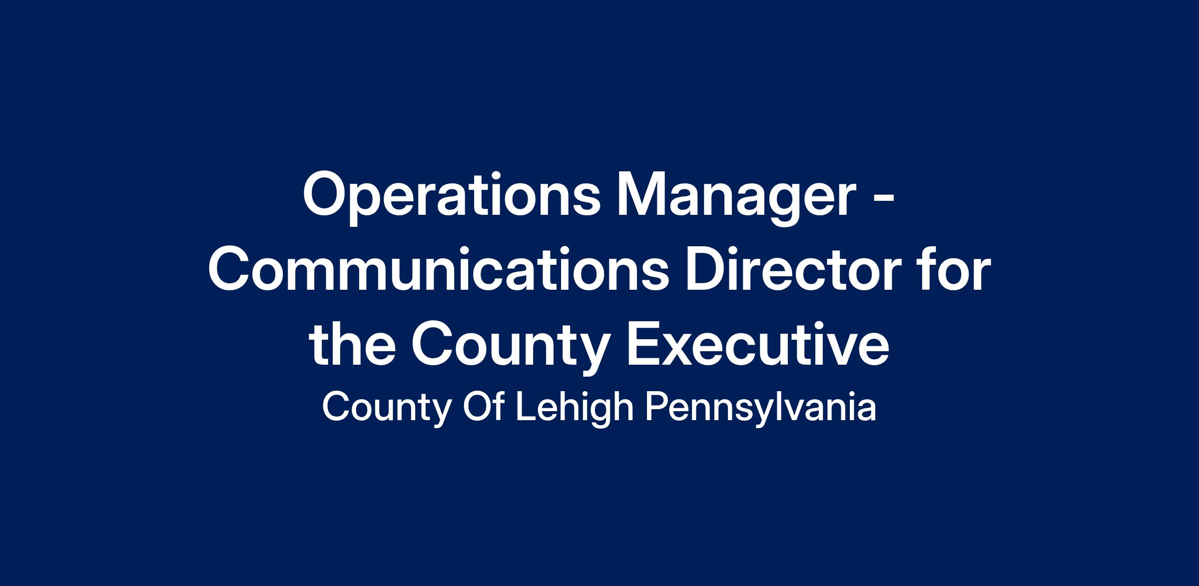 - Serves as spokesperson and liaison for the County of Lehigh to the media on a variety of topics. Establishes, promotes and maintains effective relations with the media and advises officials, departments and employees on how to properly frame issues and present.