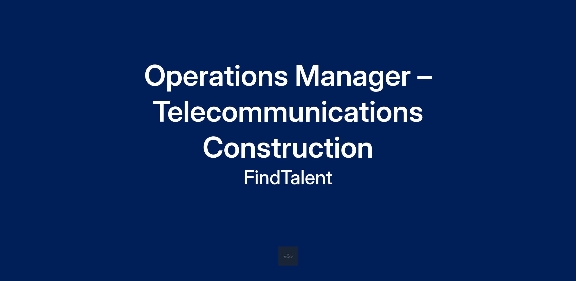 FindTalent is seeking a highly experienced Operations Manager to oversee and manage telecommunications construction projects across multiple states. The ideal candidate will be responsible for ensuring safety, quality, productivity, and operational efficiency across all assigned projects. This role requires strong leadership, technical expertise, and the ability to maintain excellent client and team relationships.