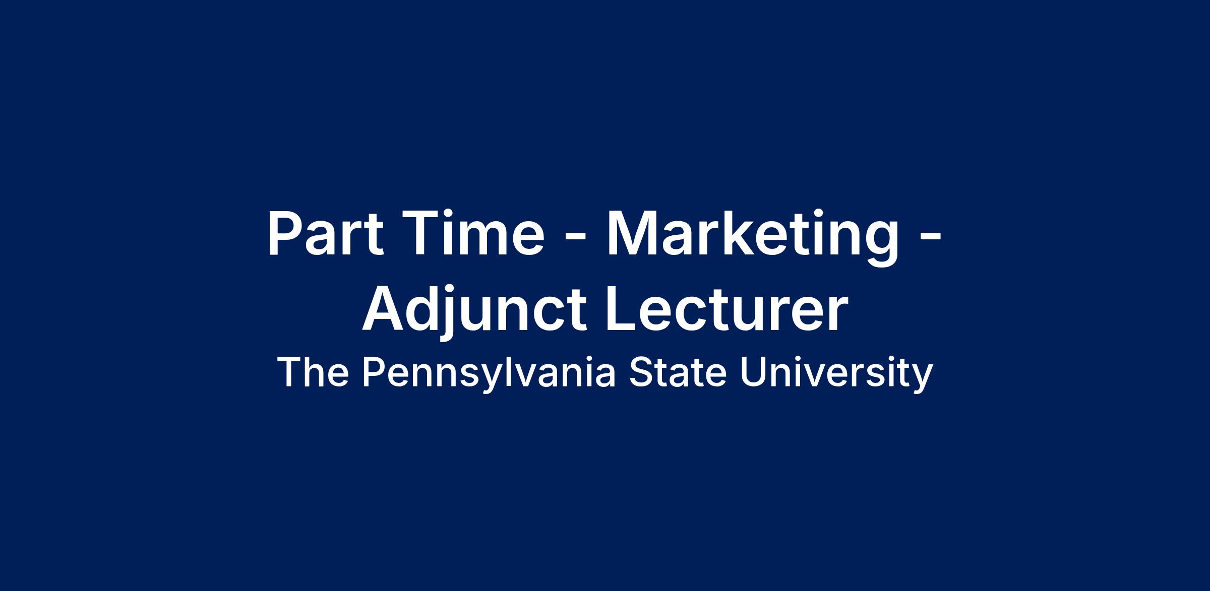 The Pennsylvania State University at Harrisburg, School of Business Administration, periodically has part-time openings for instructors to teach undergraduate Marketing courses across the curriculum.