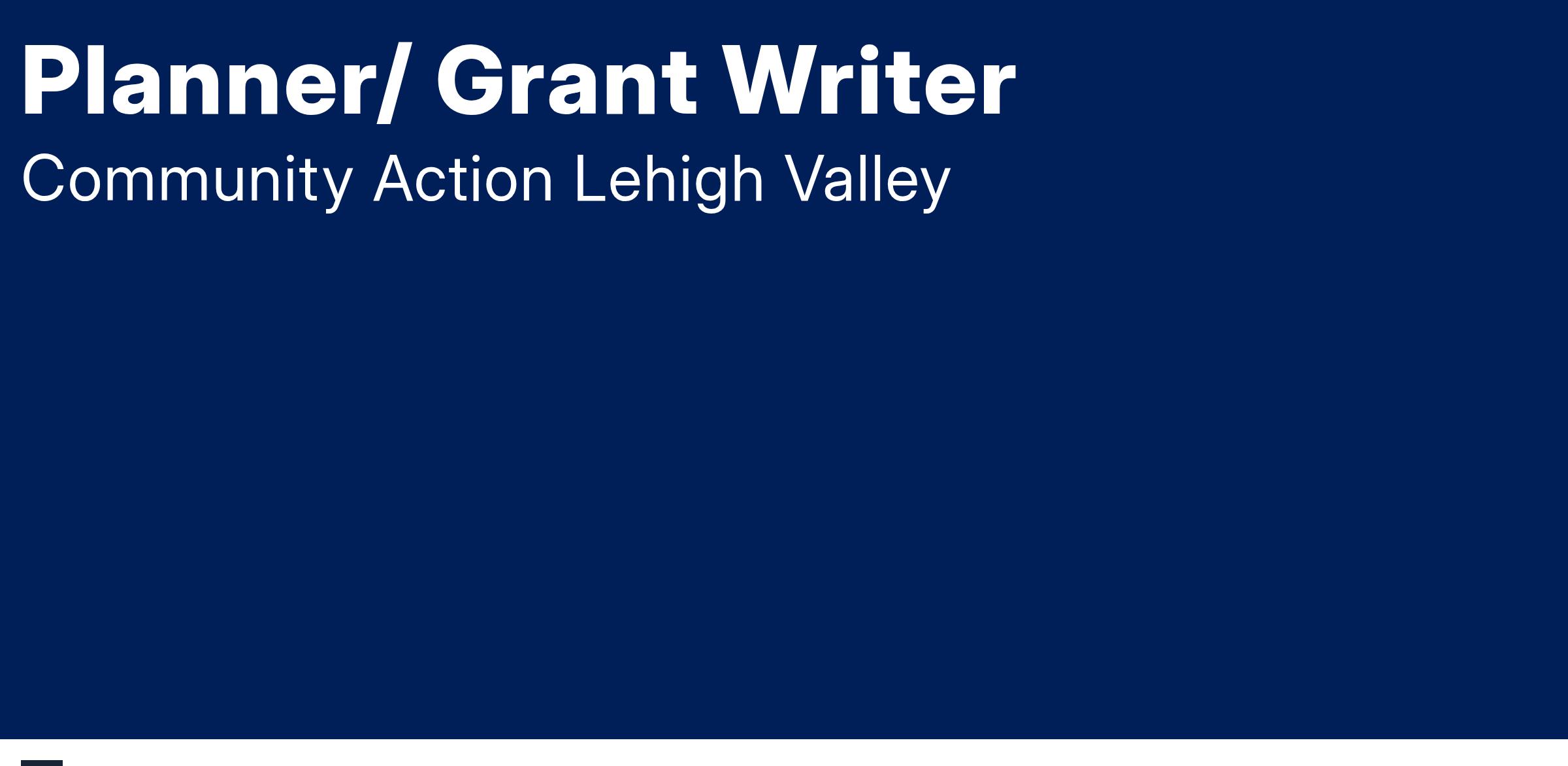 At Community Action Lehigh Valley, we're looking for a strategic thinker and strong writer to join our team as a Planner/Grant Writer. This role is ideal for experienced nonprofit professionals who are eager to advance social change through planning, advocacy, and resource development. You'll play a key role in shaping innovative programs and securing critical funding that directly impacts individuals and families across the Lehigh Valley.
