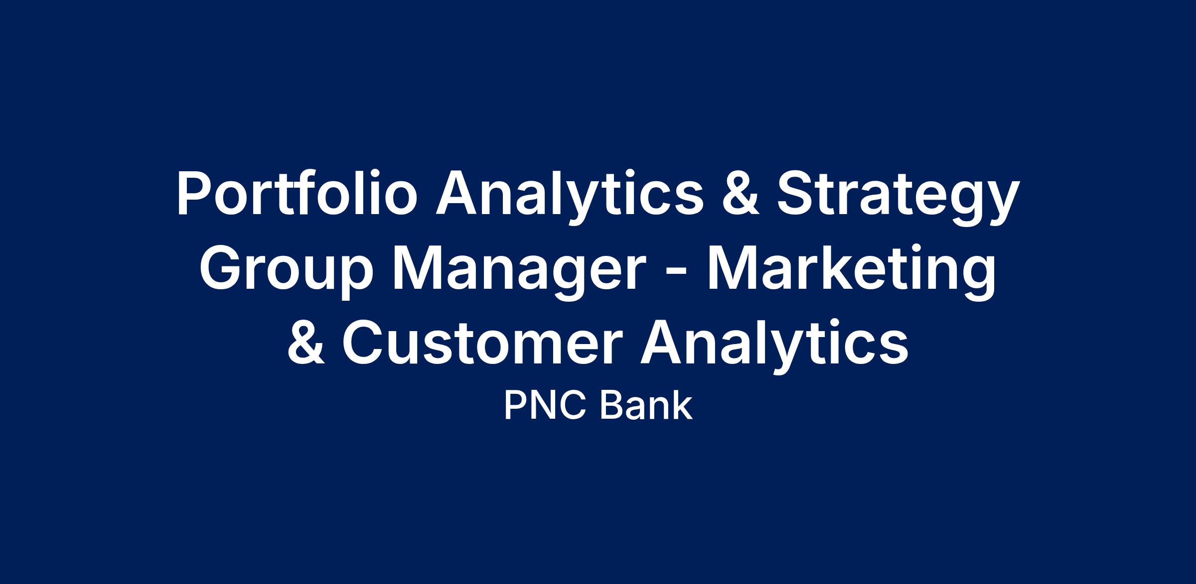 At PNC, our people are our greatest differentiator and competitive advantage in the markets we serve. We are all united in delivering the best experience for our customers. We work together each day to foster an inclusive workplace culture where all of our employees feel respected, valued and have an opportunity to contribute to the company’s success. As a Portfolio Analytics & Strategy Group Manager within PNC's Balance Sheet Analytics & Modeling Marketing & Customer Analytics organization, you will be based in Wilmington, DE, Pittsburgh, PA or Tysons Corner, VA.