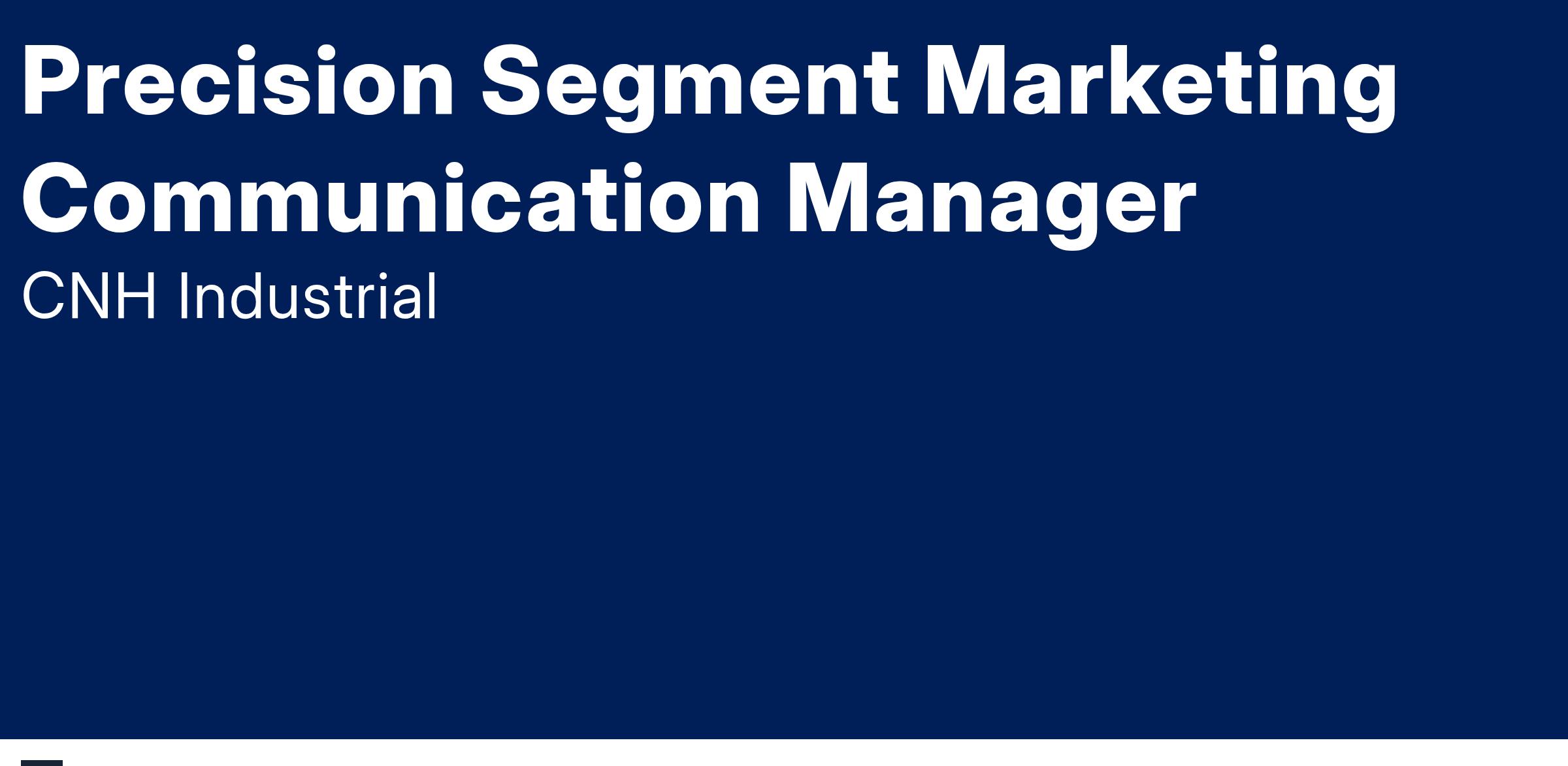 The Precision Segment Marketing Communication Manager is tasked with developing and implementing strategies which promote company growth and brand awareness specific to the Precision Technology within the New Holland Brand. Reporting directly to the Director of Commercial Marketing, the Marketing Manager will focus on the objectives of creating a cohesive messaging and market positioning strategy reflective of an industry leader, while consistently generating new high-quality sales leads and brand awareness for our technology offerings. This role serves as a key point of contact within the marketing team; working with cross-functional teams like product marketing and our Precision Technology Group within the larger CNH organization.