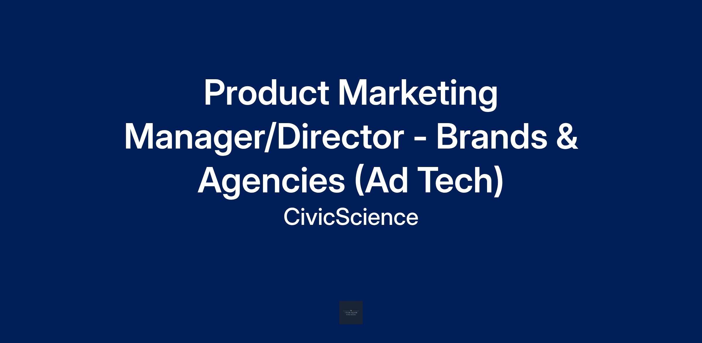 CivicScience improves data-driven advertising across the open web through the use of declared consumer intent. We are looking for a detail-oriented Product Marketing Manager/Director to join our team and improve the speed, clarity, and quality of messaging to our prospective clients at brands and agencies.