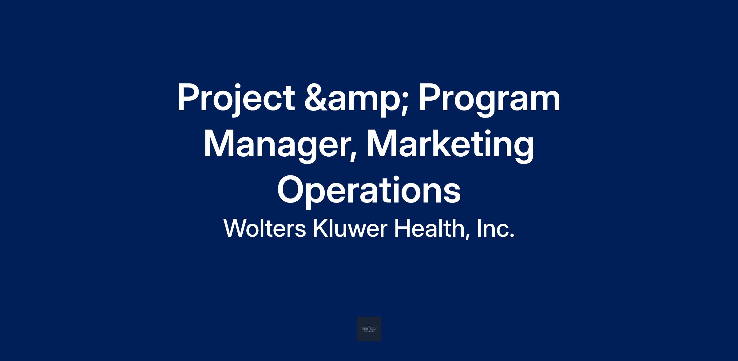 Wolters Kluwer, Health, provides trusted clinical technology and evidence-based solutions that engage clinicians, patients, researchers, students, and the next generation of healthcare providers. As the Project & Program Manager – Marketing Operations, you will play a pivotal role in driving operational excellence across marketing campaigns and initiatives within the Health Literacy Research and Practice (HLRP) team. Acting as a key liaison between internal stakeholders, you will ensure that incoming requests to the Central Marketing Organization (CMO) are evaluated and prioritized in alignment with business objectives. You will also help ensure that resources are effectively allocated to deliver high-impact, multi-channel marketing programs that support growth and engagement You’ll work closely with Product Marketing and cross-functional teams to manage high-visibility campaigns, events, and ongoing marketing efforts, while maintaining a best-in-class project management framework. In this role, you will work directly with the Director, Marketing Operations and work a hybrid schedule (two days in office, three days remote) from one of our local offices. Key Responsibilities: Lead and manage marketing programs aligned with organizational goals and revenue priorities. Serve as a central hub for project intake, prioritization, and resource allocation across Central Marketing. Collaborate with internal and external stakeholders to define project scope, timelines, and deliverables. Monitor project progress, identify risks, and implement mitigation strategies through to the end of the campaign. Ensure timely execution of campaigns and events, maintaining high standards of quality and efficiency. Provide regular reporting on project status, milestones, and performance metrics through both written tools and live stakeholder engagement, including meetings and presentations. Ensure clear, consistent communication with cross-functional teams to drive alignment, transparency, and timely decision-making. Support Product Marketing with execution of multi-channel growth campaigns. Qualifications: Education: Bachelor’s degree in Business, Marketing, or related field (or equivalent experience). Experience: 5+ years of experience in marketing, including event marketing. 5+ years of hands-on project management experience. Proven ability to manage complex projects, set deadlines, and remove blockers. Strong stakeholder management and communication skills. Demonstrated critical thinking and problem-solving capabilities. Marketing to both B2C and B2B customers. Tools & Technologies: Familiarity with marketing automation platforms (Marketo, HubSpot). Experience with project management tools (Smartsheet, JIRA). Knowledge of CMS platforms (AEM, Sitecore), webinar tools (On24, Zoom, Webex), CRM systems (Salesforce), and analytics tools (Google Analytics, Domo). Microsoft Office Suite (Word, Excel, PowerPoint, Outlook, Teams). Infor MRM or similar marketing resource management tools. Key Competencies: Strong organizational and time management skills. Ability to work independently and collaboratively. Excellent verbal and written communication skills. High attention to detail and initiative. Adaptability and responsiveness to change. Positive, team-oriented attitude with a focus on building trust and collaboration. #LI-Hybrid Benefits: A comprehensive benefits package that begins your first day of employment. Additional Information: Wolters Kluwer offers great benefits and programs to help meet your needs and balance your work and personal life, including Medical, Dental, & Vision Plans, 401(k), FSA/HSA, Commuter Benefits, Tuition Assistance Plan, Vacation and Sick Time, and Paid Parental Leave. Full details of our benefits are available - https://www.mywolterskluwerbenefits.com/index.html Diversity Matters: Wolters Kluwer strives for an inclusive company culture in which we attract, develop, and retain diverse talent to achieve our strategy. As a global company, having a diverse workforce is of the utmost importance. We've been recognized by employees as a European Diversity Leader in the Financial Times, as one of Forbes America’s Best Employers for Diversity in 2022, 2021 and 2020 and as one of Forbes America’s Best Employers for Women in 2021, 2020, 2019 and 2018. In 2020, we placed third in the Female Board Index, and were recognized by the European Women on Boards Gender Diversity Index. Wolters Kluwer and all of our subsidiaries, divisions and customer/departments is an Equal Opportunity / Affirmative Action employer. Applicants may be required to appear onsite at a Wolters Kluwer office as part of the recruitment process. Compensation: Target salary range CA, CT, CO, DC, HI, IL, MD, MN, NY, RI, WA:: $76,350 - $105,700 If making a difference matters to you, then you matter to us. Join us, at Wolters Kluwer, and be part of a dynamic global technology company that makes a difference every day. We’re innovators with impact. We provide expert software and information solutions that the world’s leading professionals rely on, in the moments that matter most. You’ll make a real difference in the lives of millions of people. Together with our customers, we help to advance sustainability, health, justice, prosperity, and commerce around the world. You can thrive at Wolters Kluwer, where diversity is core to our collective strength and high performance. Be your unique self, share your creative ideas, do your best work, and take time to grow in our caring and inclusive culture where you can belong. Wolters Kluwer reported 2023 annual revenues of €5.6 billion. The group serves customers in over 180 countries, maintains operations in over 40 countries, and employs approximately 21,400 people worldwide. Our customers work in industries which impact the lives of millions of people every single day. Our mission is to empower our professional customers with the information, software solutions, and services 