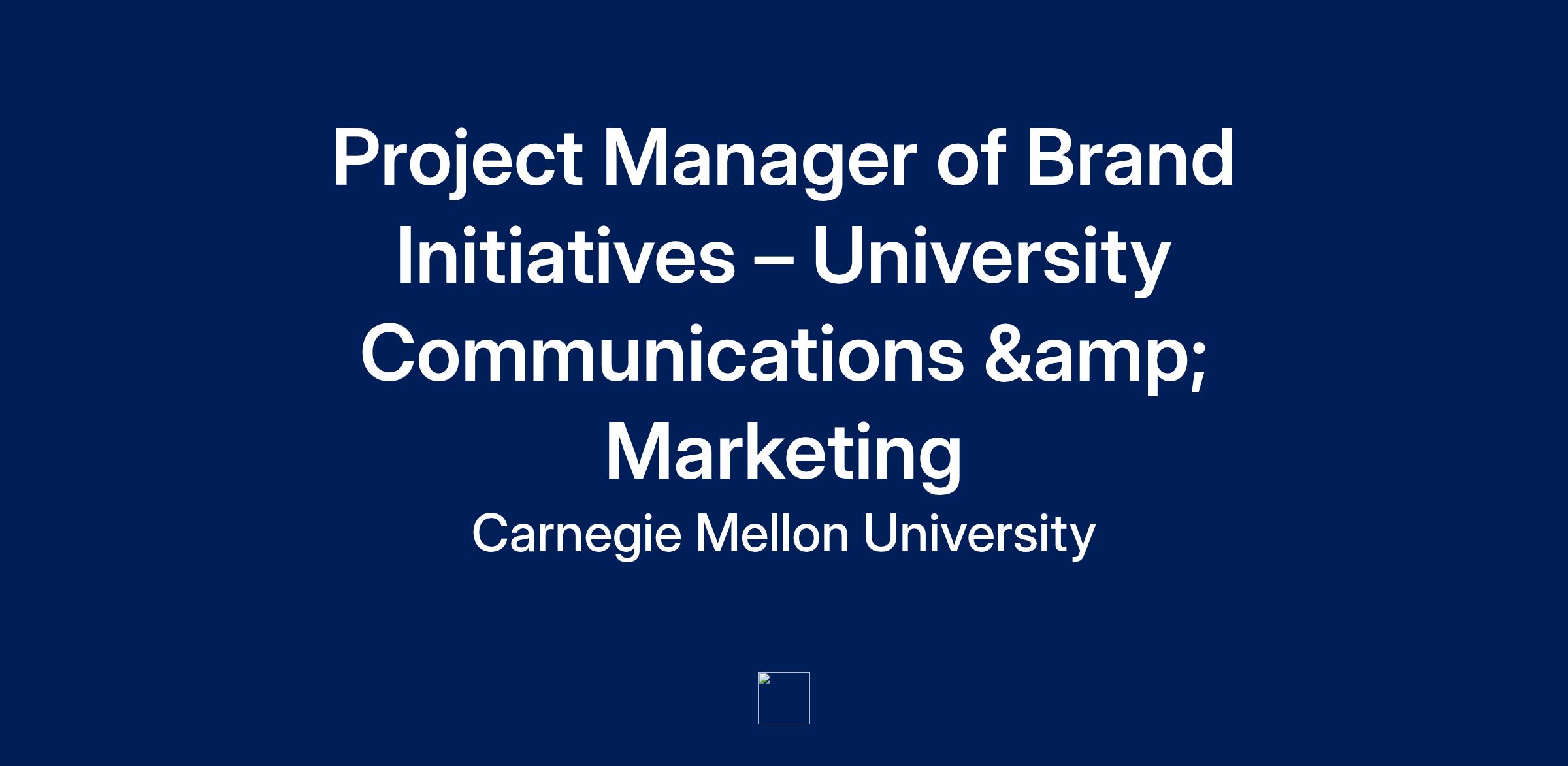 This position, seated on the University Communications and Marketing team, works closely with enrollment management, undergraduate admission, the Rales Fellows Program, and academic colleges to coordinate marketing initiatives to achieve strategic enrollment objectives, and supports development of marketing plans under the guidance of UCM leadership. This role will help steer brand projects and initiatives that build continuity and ensure brand consistency while supporting the broad marketing strategy of UCM. Understands objectives of a project scope to contribute to the development of sophisticated, multichannel marketing strategies, plans and campaigns. This role requires a high level of project management experience, requiring the ability to translate complex, high-level strategic objectives into actionable operational plans. Success in this position relies on expert organization and the capacity to lead cross-functional teams through the full project lifecycle—from scope definition and resource allocation to execution and retrospective analysis. The ideal candidate will leverage project management best practices to drive efficiency and accountability, ensuring that multifaceted marketing campaigns involving diverse stakeholders are delivered on time, within budget, and to the highest standard of brand consistency. Core responsibilities include: Serve as the central operational hub for brand initiatives, facilitating clear communication between communication and marketing teams, academic stakeholders, and leadership to resolve bottlenecks and ensure seamless workflow across the university ecosystem Apply project management methodologies to oversee high-stakes marketing initiatives, utilizing the department's project management systems to maintain documentation, manage critical paths, and mitigate risks proactively Manage the Brand exploratory and research project that tracks our overall brand equity Supports development and implementation of integrated marketing plans for university-level initiatives and priorities, including UCM, undergraduate admission, the Rales Fellows Program and other special projects, as assigned Collaborates with Admission/EM team members, partnering closely with the Executive Director of Strategic Communications, to build strategy for successful full-funnel recruitment processes inclusive of digital, print and event marketing in support of recruitment strategies, initiatives and goals Execute segmented and sequenced marketing communications plans that target all phases of the admission funnel for prospective students, parents/families and related influencers Provide consultation to academic colleges and administrative units to support the efficacy of their marketing efforts and promote alignment with the university’s brand blueprint and marketing programs Collaborate with UCM team on creative – print and digital – development, execution and implementation to ensure project objectives are met Project management in UCM’s project management system to keep projects on track and ensure efficient workflow and communication Leverages brand messages to enhance national stature of CMU as well as ensuring internal brand alignment on collateral, video, web and events for various brand and campus initiatives Research and stay abreast of industry trends to share with university leaders and stakeholders Adaptability, excellence, and passion are vital qualities within Carnegie Mellon University. We are in search of a team member who can effectively interact with a varied population of internal and external partners at a high level of integrity. We are looking for someone who shares our values and who will support the mission of the university through their work. You should demonstrate: Excellent oral and written communication skills Demonstrated relationship-building skills Strong organization and planning skills Qualifications: Bachelor’s degree required, Masters degree preferred 5-8 years of Marketing, brand management, project management, or related experience Experience in higher education is a plus, but not required A combination of education and relevant experience from which comparable knowledge is demonstrated may be considered Requirements: Successful pre-employment background check Additional Information: Sponsorship: Applicants for this position must be currently legally authorized to work for CMU in the United States. CMU will not sponsor or take over the sponsorship of an employment visa for this opportunity. Carnegie Mellon is not a qualifying employer for the STEM OPT benefit: only the 12-month OPT may be used to work at Carnegie Mellon. Work Posture: This position is operating on a hybrid schedule, with an on-campus/in-office presence three days a week. Joining the CMU team opens the door to an array of exceptional benefits. Benefits eligible employees enjoy a wide array of benefits including comprehensive medical, prescription, dental, and vision insurance as well as a generous retirement savings program with employer contributions. Unlock your potential with tuition benefits, take well-deserved breaks with ample paid time off and observed holidays, and rest easy with life and accidental death and disability insurance. Additional perks include a free Pittsburgh Regional Transit bus pass, access to our Family Concierge Team to help navigate childcare needs, fitness center access, and much more! For a comprehensive overview of the benefits available, explore our Benefits page. At Carnegie Mellon, we value the whole package when extending offers of employment. Beyond credentials, we evaluate the role and responsibilities, your valuable work experience, and the knowledge gained through education and training. We appreciate your unique skills and the perspective you bring. Your journey with us is about more than just a job; it’s about finding the perfect fit for your professional growth and personal aspirations. Are you interested in an exciting op