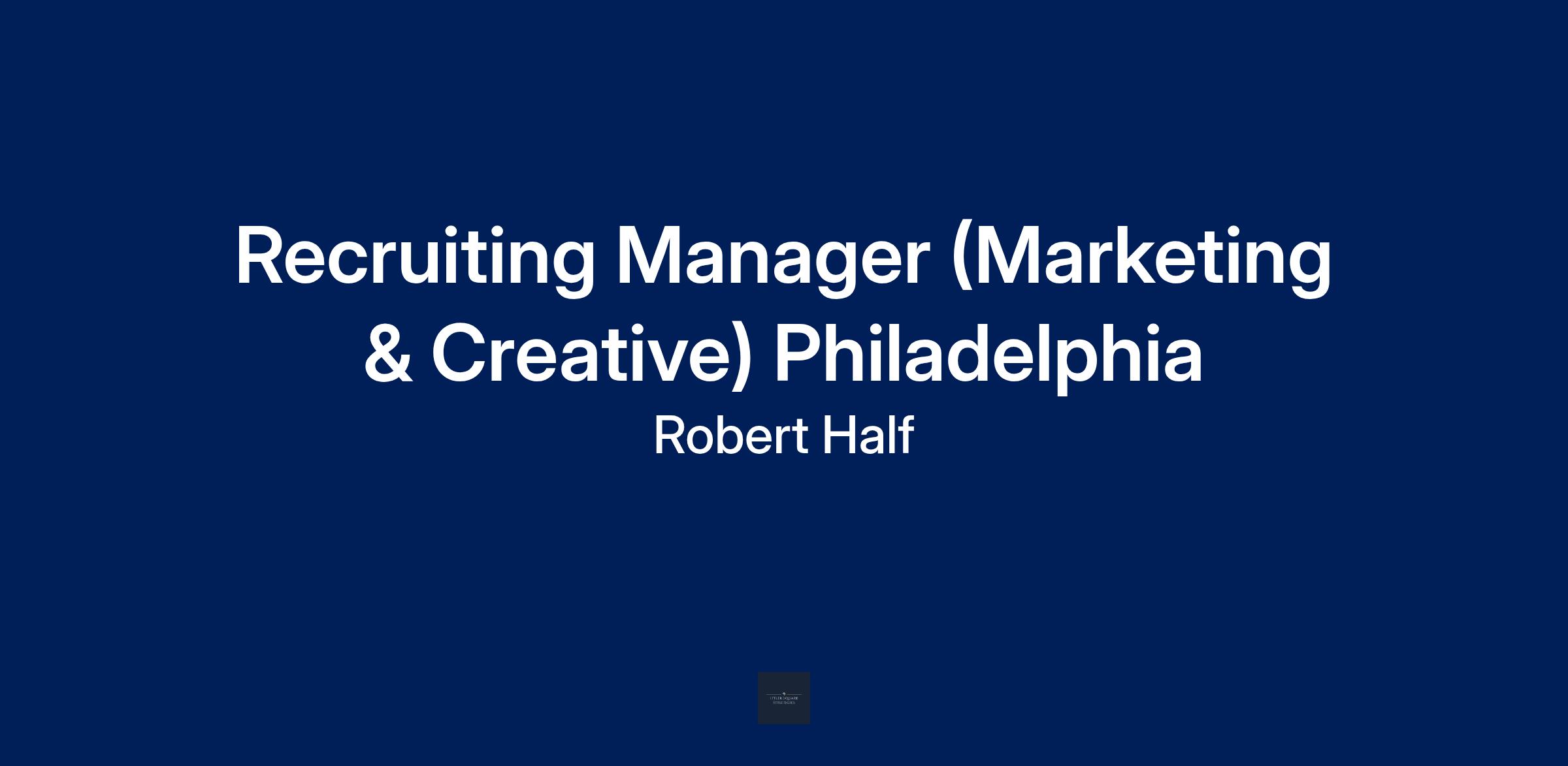Recruiting Manager (Marketing & Creative) Philadelphia