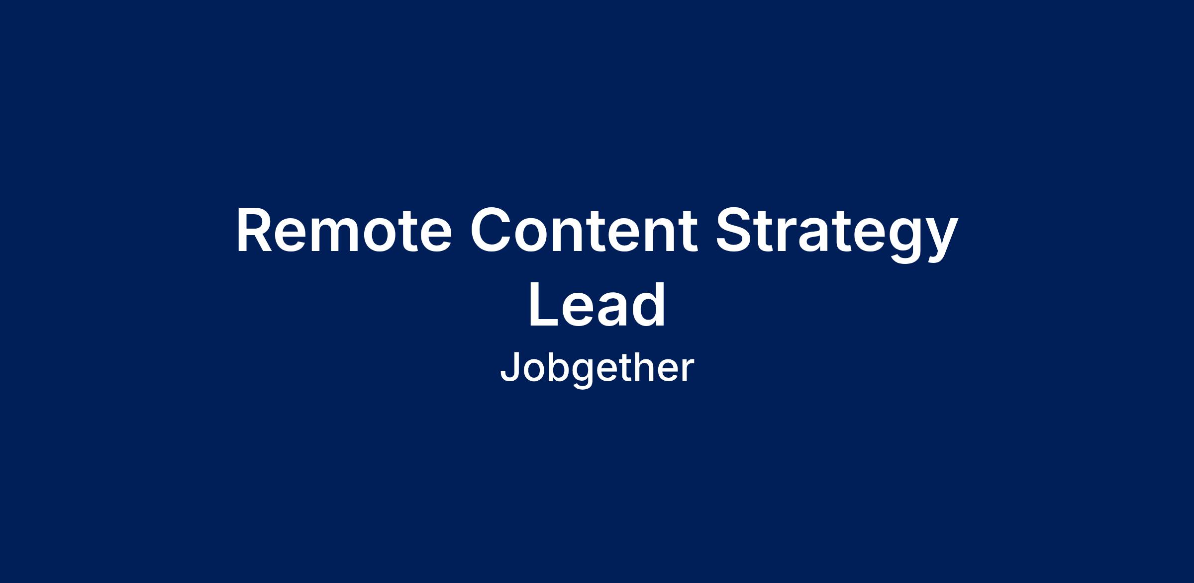Remote Content Strategy Lead