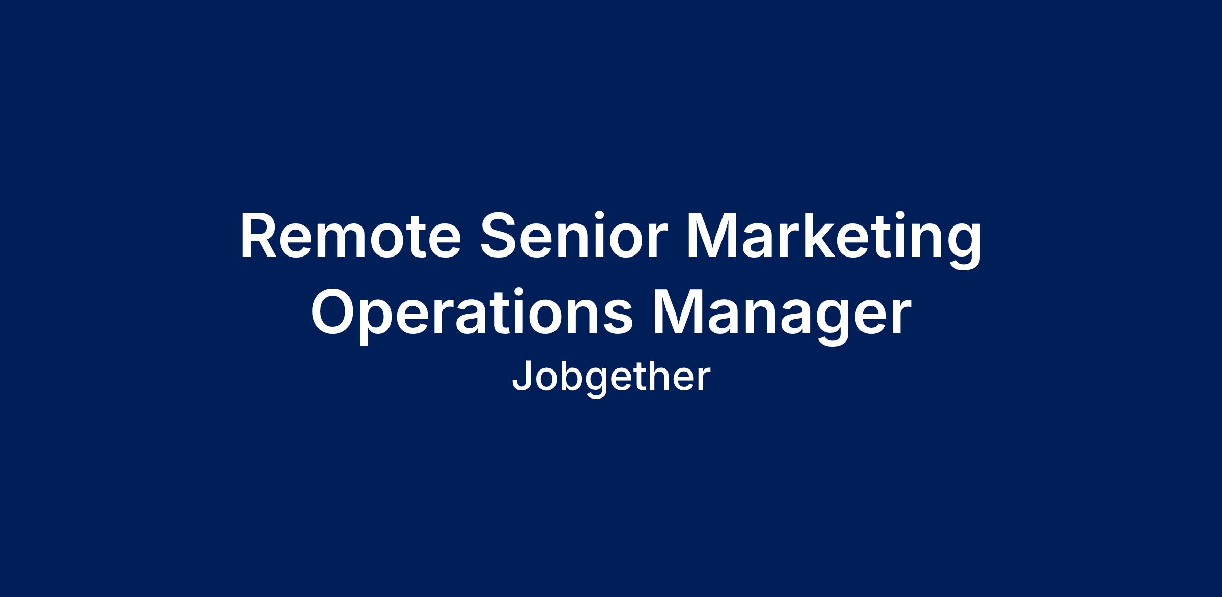 Remote Senior Marketing Operations Manager
