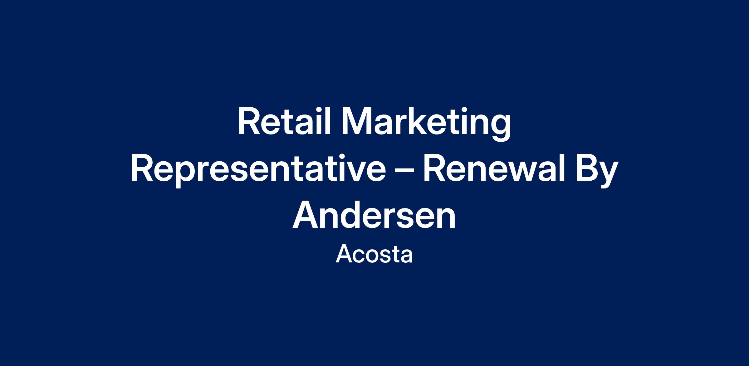 Are you a natural communicator who loves engaging with people? Do you thrive in dynamic environments like retail stores and events? If so, Renewal by Andersen is looking for you!