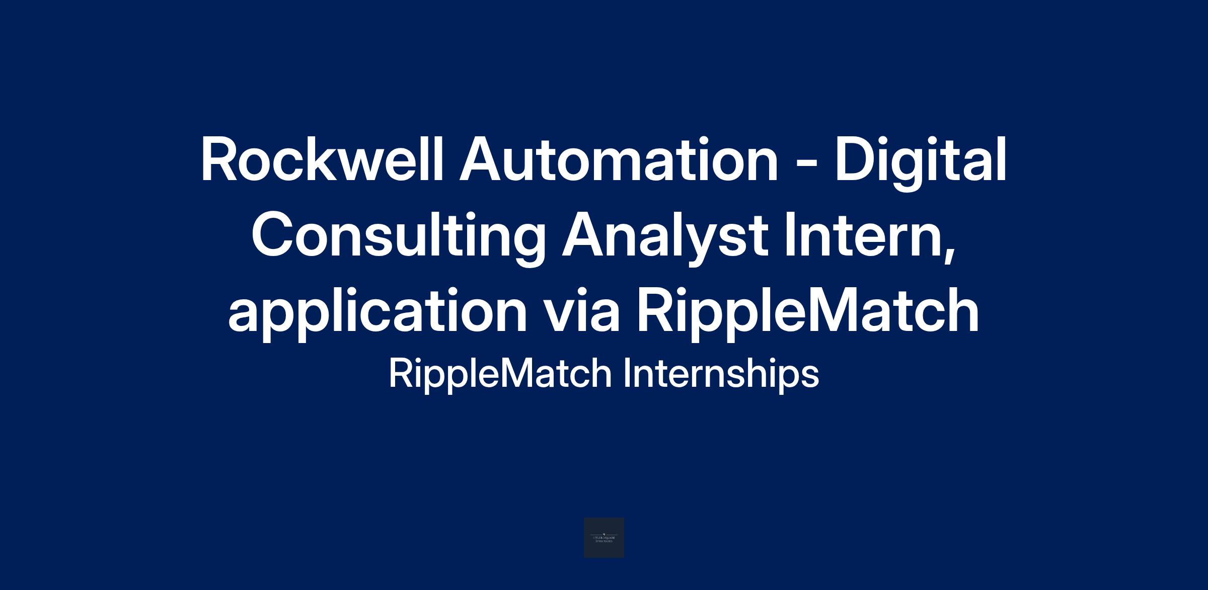This role is with Rockwell Automation. Rockwell Automation uses RippleMatch to find top talent.