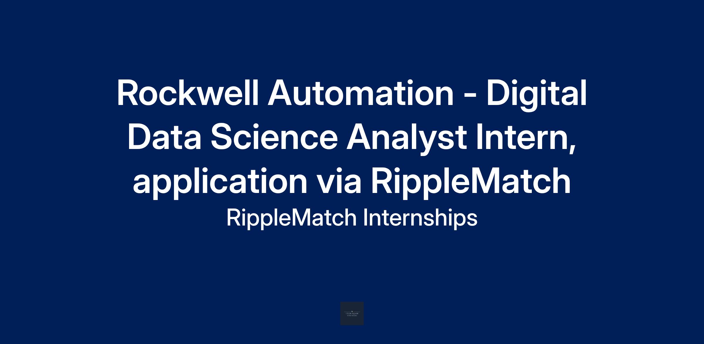 This role is with Rockwell Automation. Rockwell Automation uses RippleMatch to find top talent.