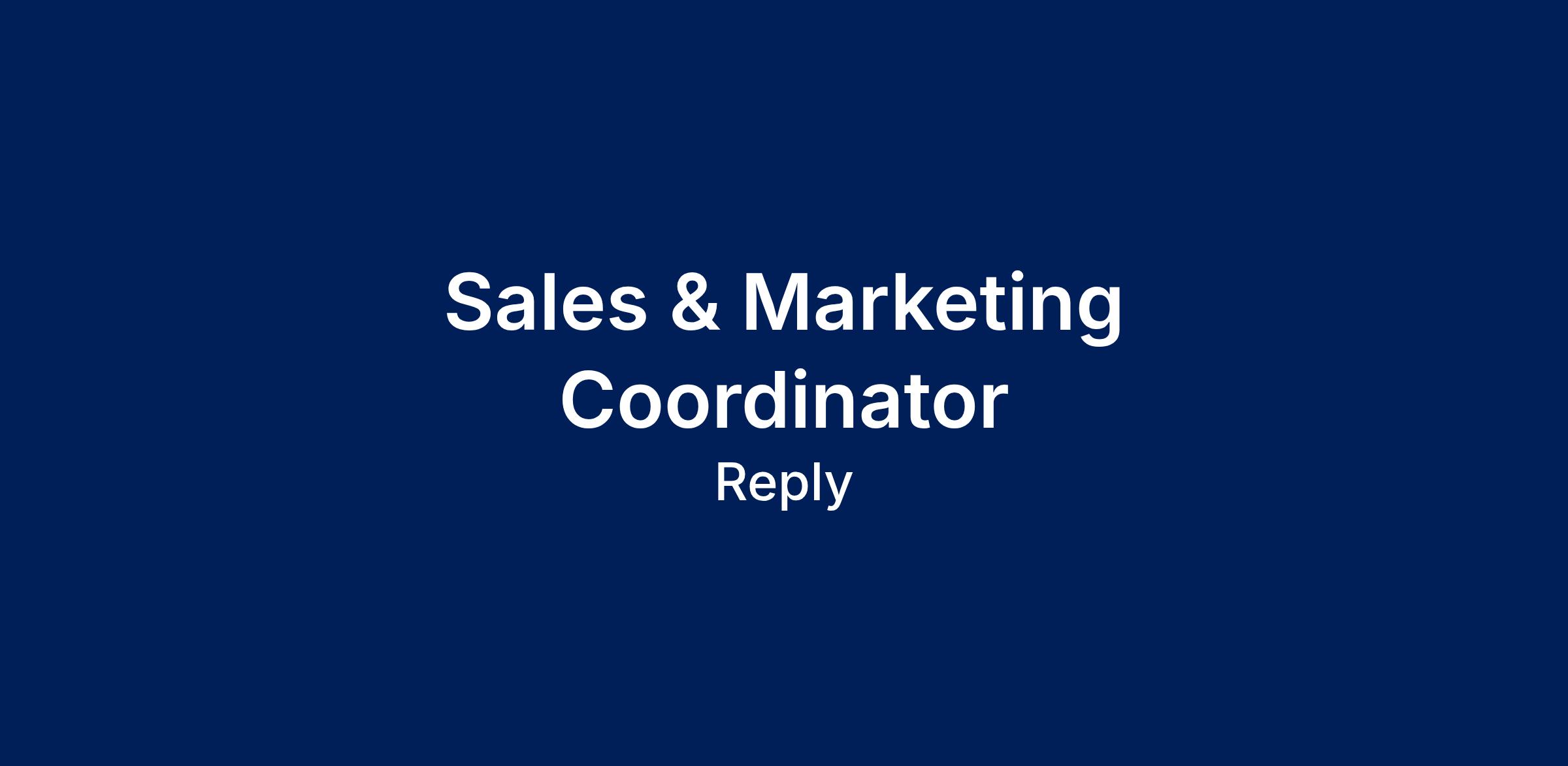 At Syskoplan Reply, we are seeking a Sales & Marketing Coordinator to support our sales and marketing team with CRM management, campaign preparation, event coordination, and general administrative support. You are highly organized, detail-oriented, and interested in building experience in marketing operations and business support.