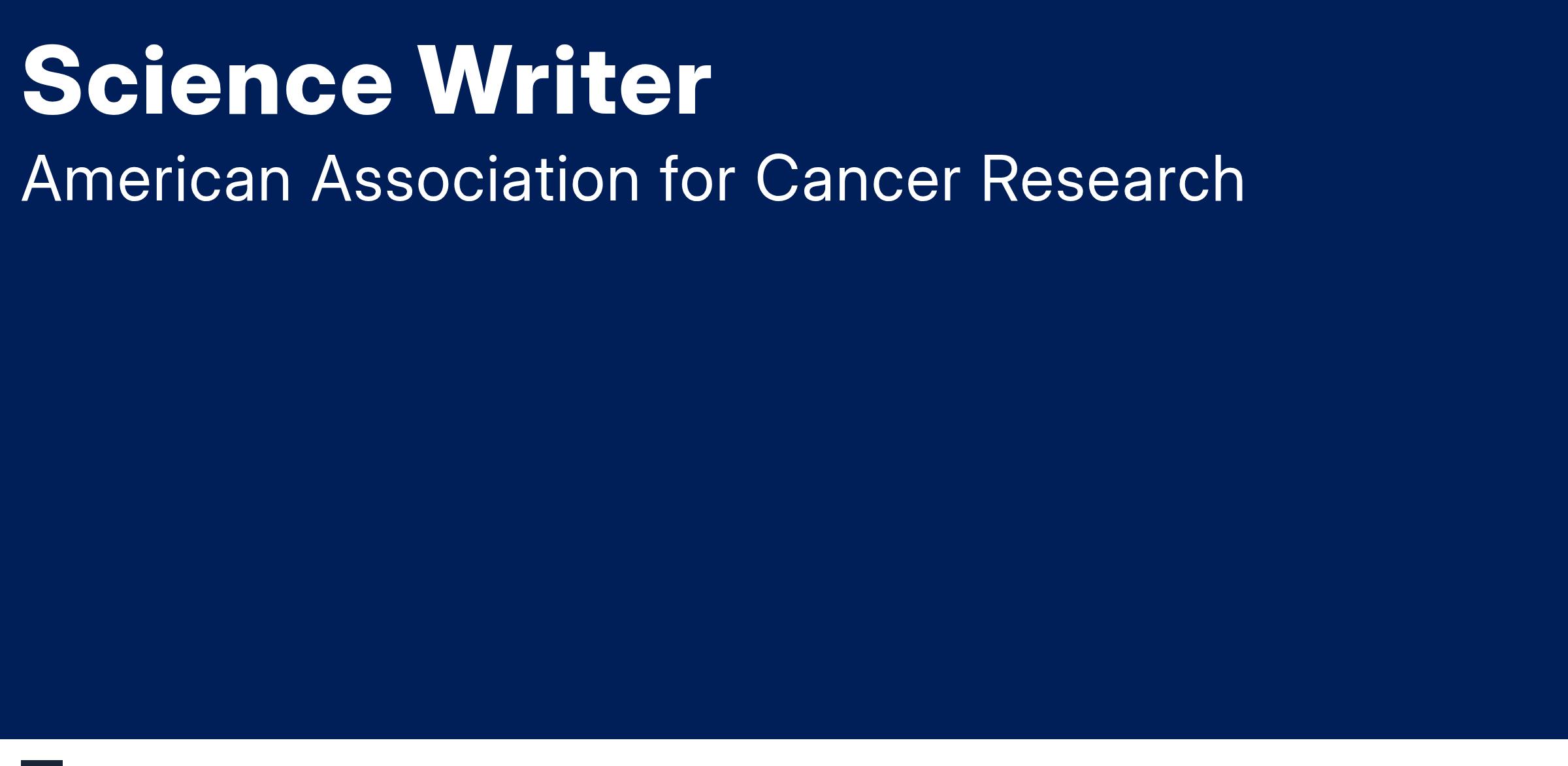 The Science Writer writes and edits content that helps promote awareness of AACR’s scientific activities among the public, policymakers, the media, and others interested in cancer research. Responsibilities include: