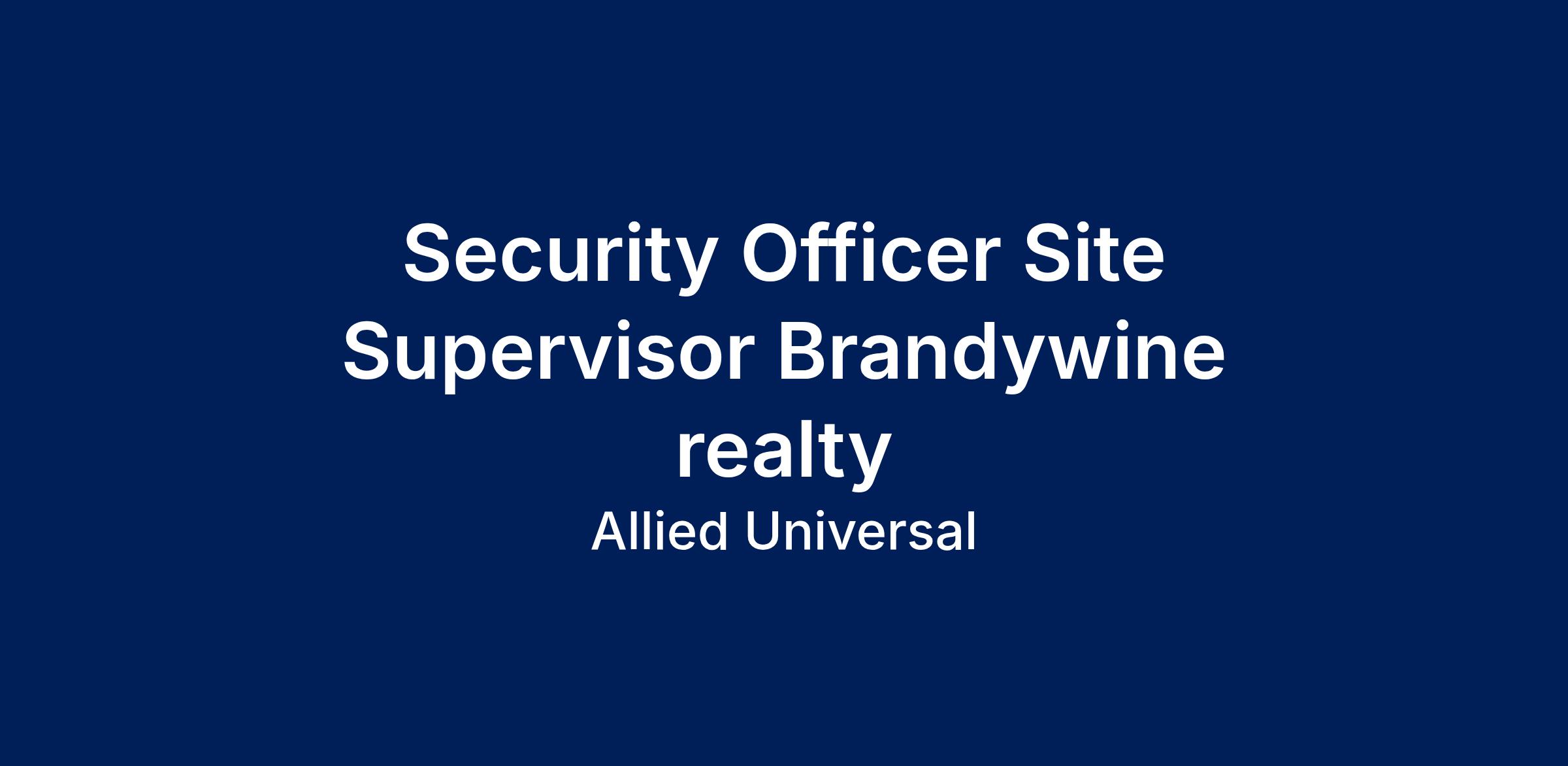 Allied Universal Services is currently searching for a Security Site Supervisor.