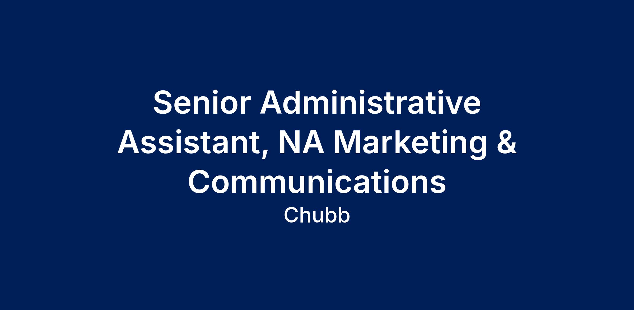 DescriptionChubb is seeking a Senior Administrative Assistant for the Head of North America Marketing & Communications and the broader NA Marketing & Communications team.