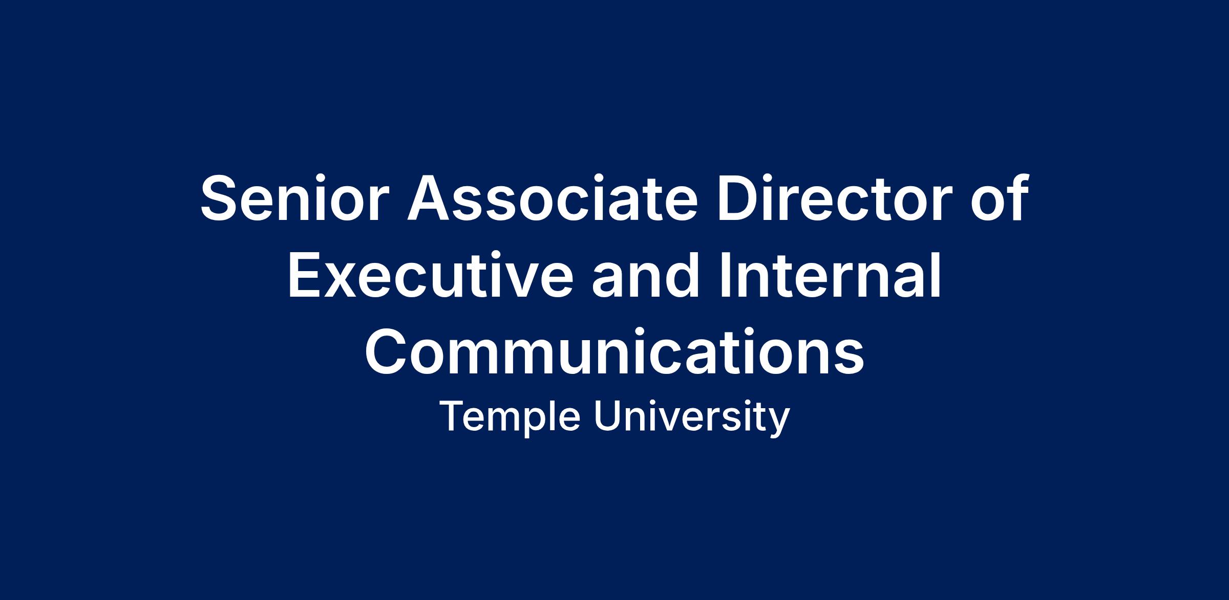 The Temple University's Lewis Katz School of Medicine's Marketing and Communications Department is searching for a Senior Associate Director of Executive and Internal Communications to join our team!
