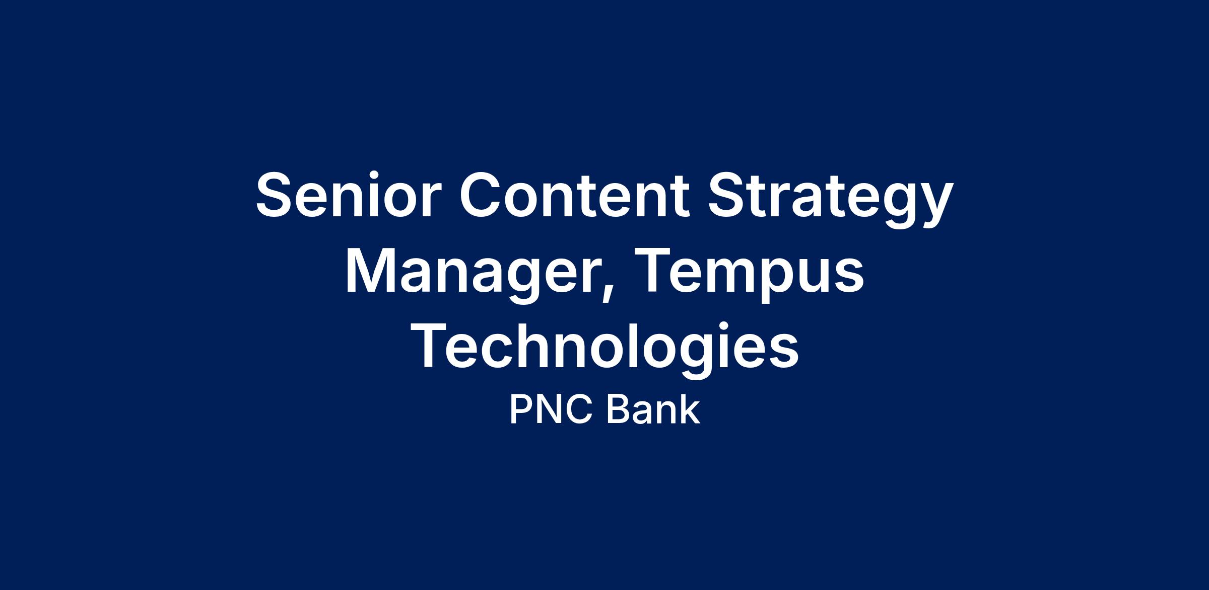 As an Senior Content Strategy Manager within Tempus Technologies, subsidiary of PNC, you will be based remotely.
