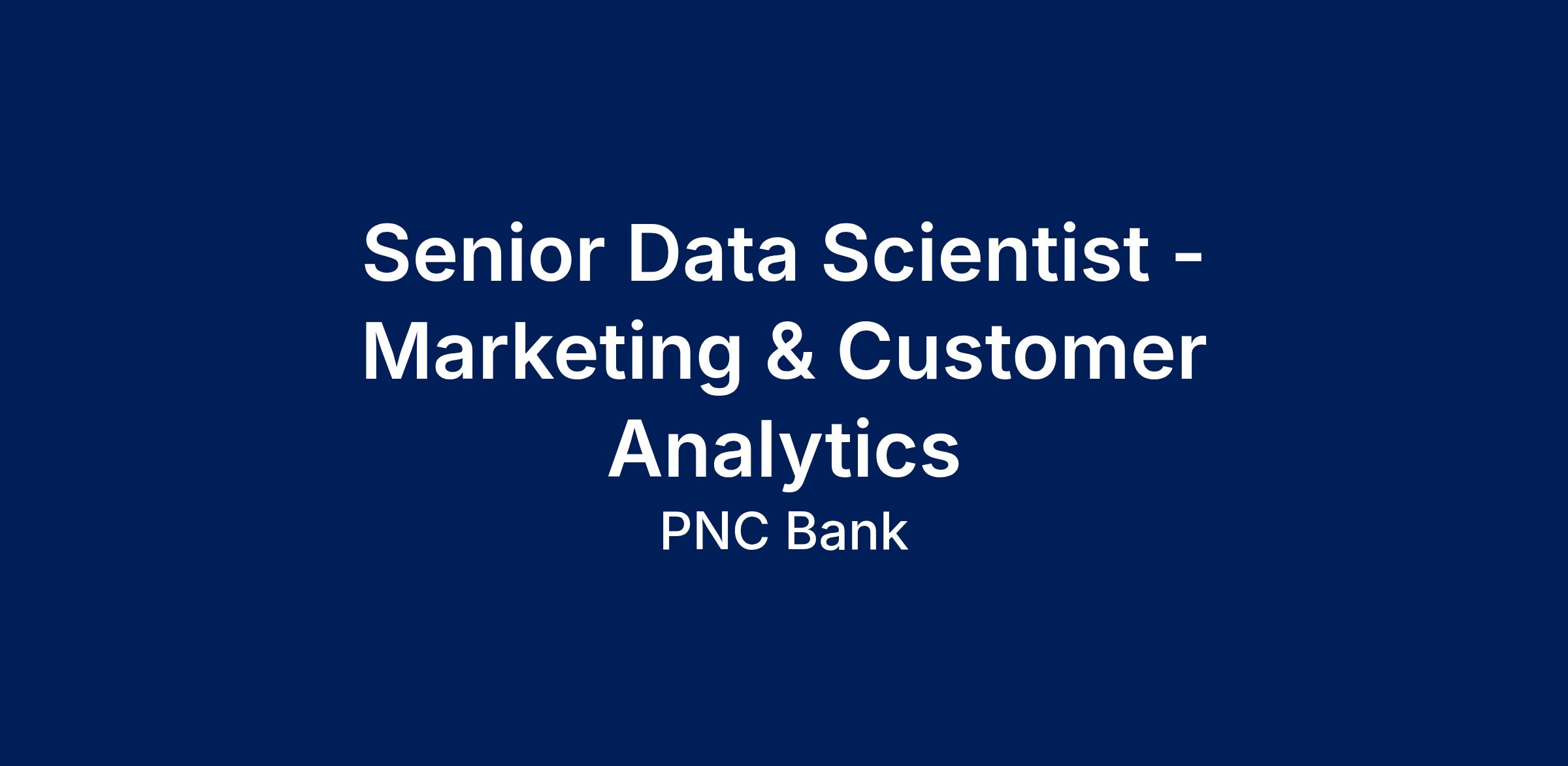 At PNC, our people are our greatest differentiator and competitive advantage in the markets we serve. We are all united in delivering the best experience for our customers. We work together each day to foster an inclusive workplace culture where all of our employees feel respected, valued and have an opportunity to contribute to the company’s success. As a Senior Data Scientist within PNC's Data, Model & Analytics organization specifically within our Marketing & Customer Analytics group, you will be based in Pittsburgh, PA, Tysons Corner or Vienna, VA or Wilmington, DE.