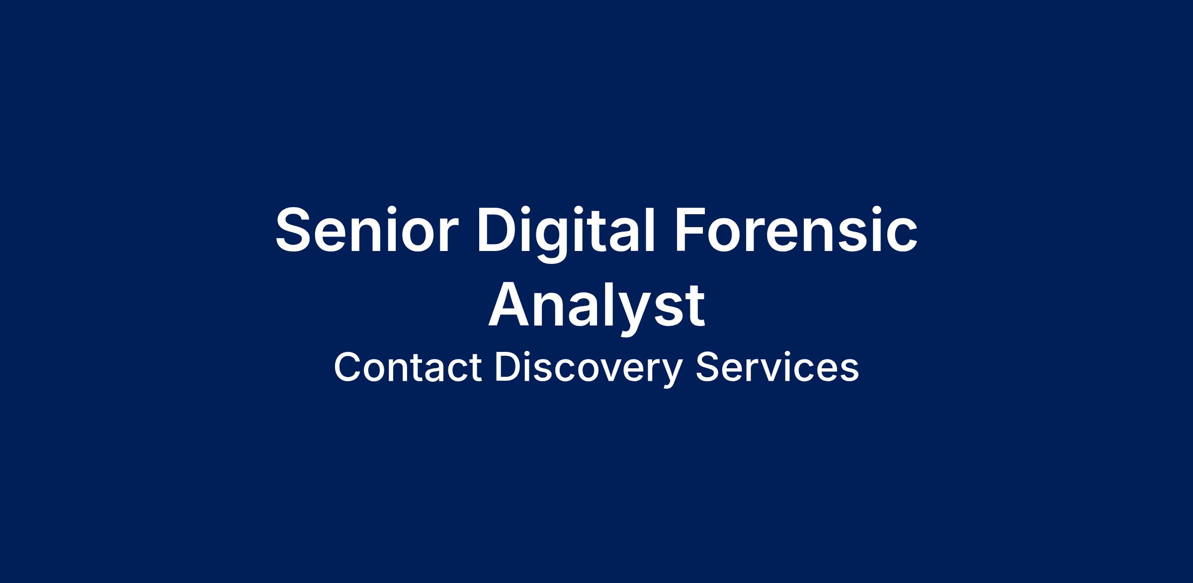 Senior Digital Forensic Analyst Contact Discovery Services - Washington, DC Location: Remote Start Date: Negotiable